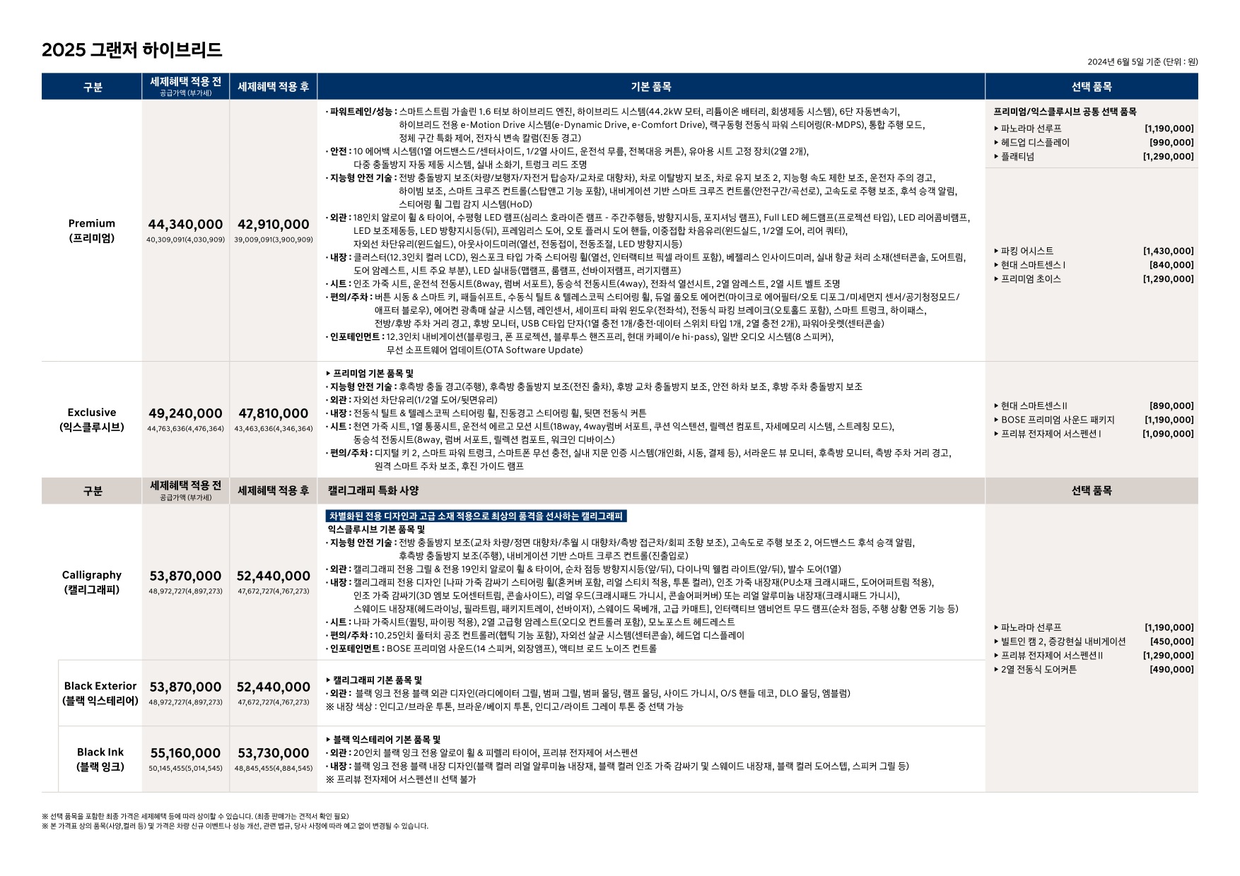2024년 6월 그랜저 하이브리드 신차가격표 (2025년형 그랜저)