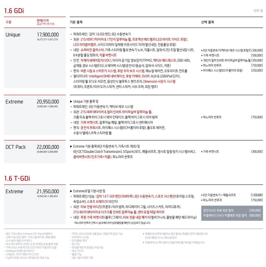 2011년 7월 벨로스터 신차가격표 (듀얼클러치 DCT 모델 추가)