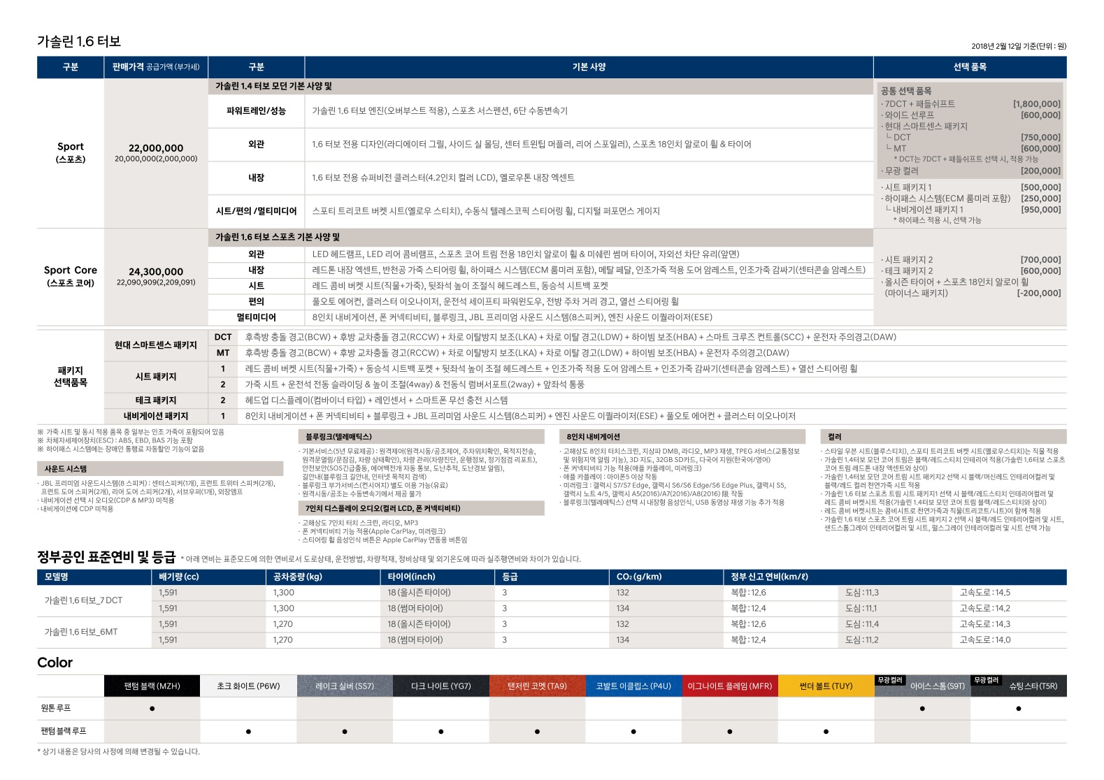 2018년 2월 벨로스터 신차가격표 (2세대 JS 신형 벨로스터)