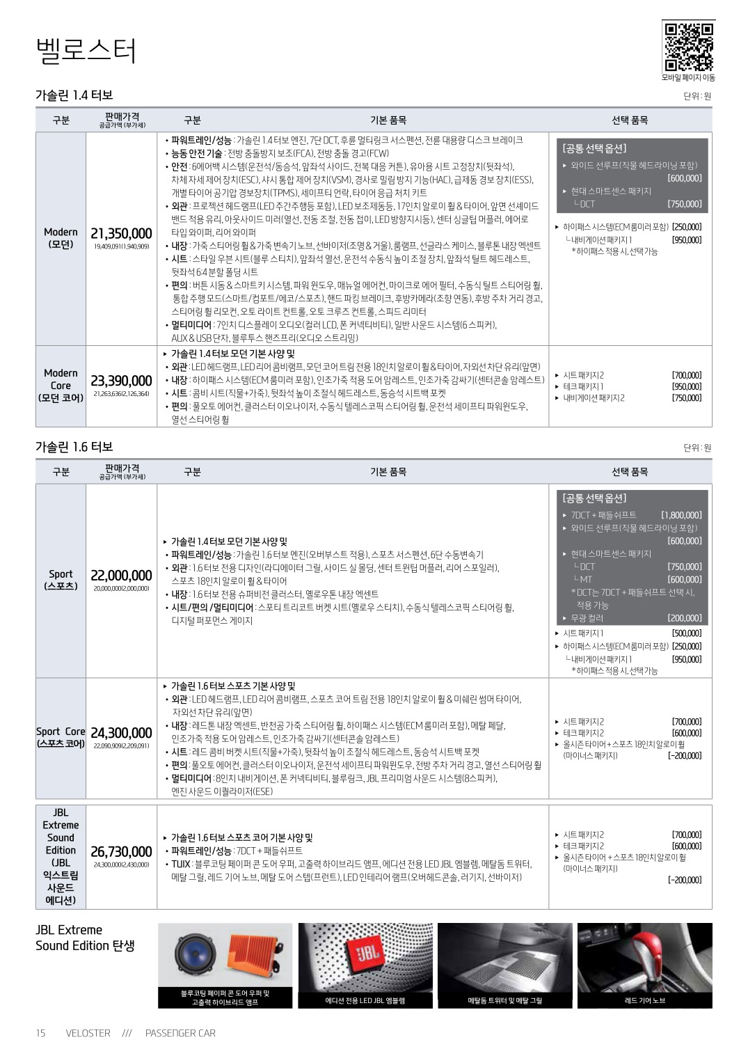 2018년 2월 벨로스터 신차가격표 (2세대 JS 신형 벨로스터)