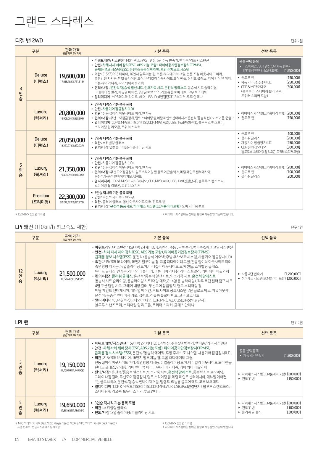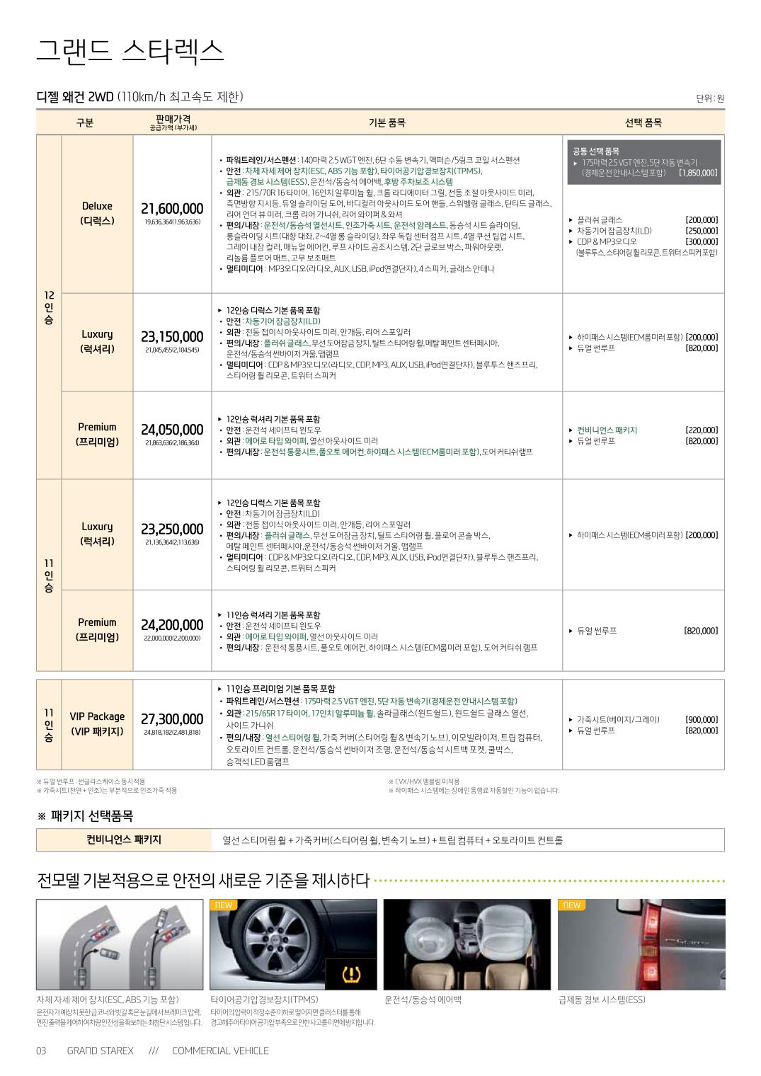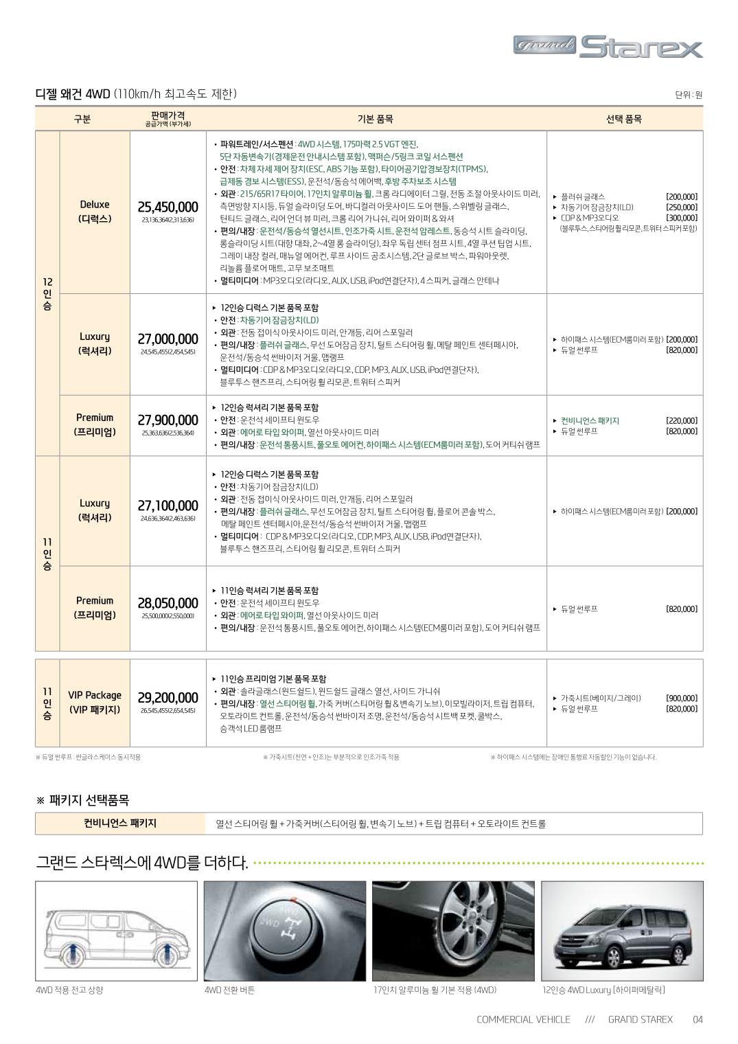 2015년 4월 그랜드 스타렉스 특장차 신차가격표