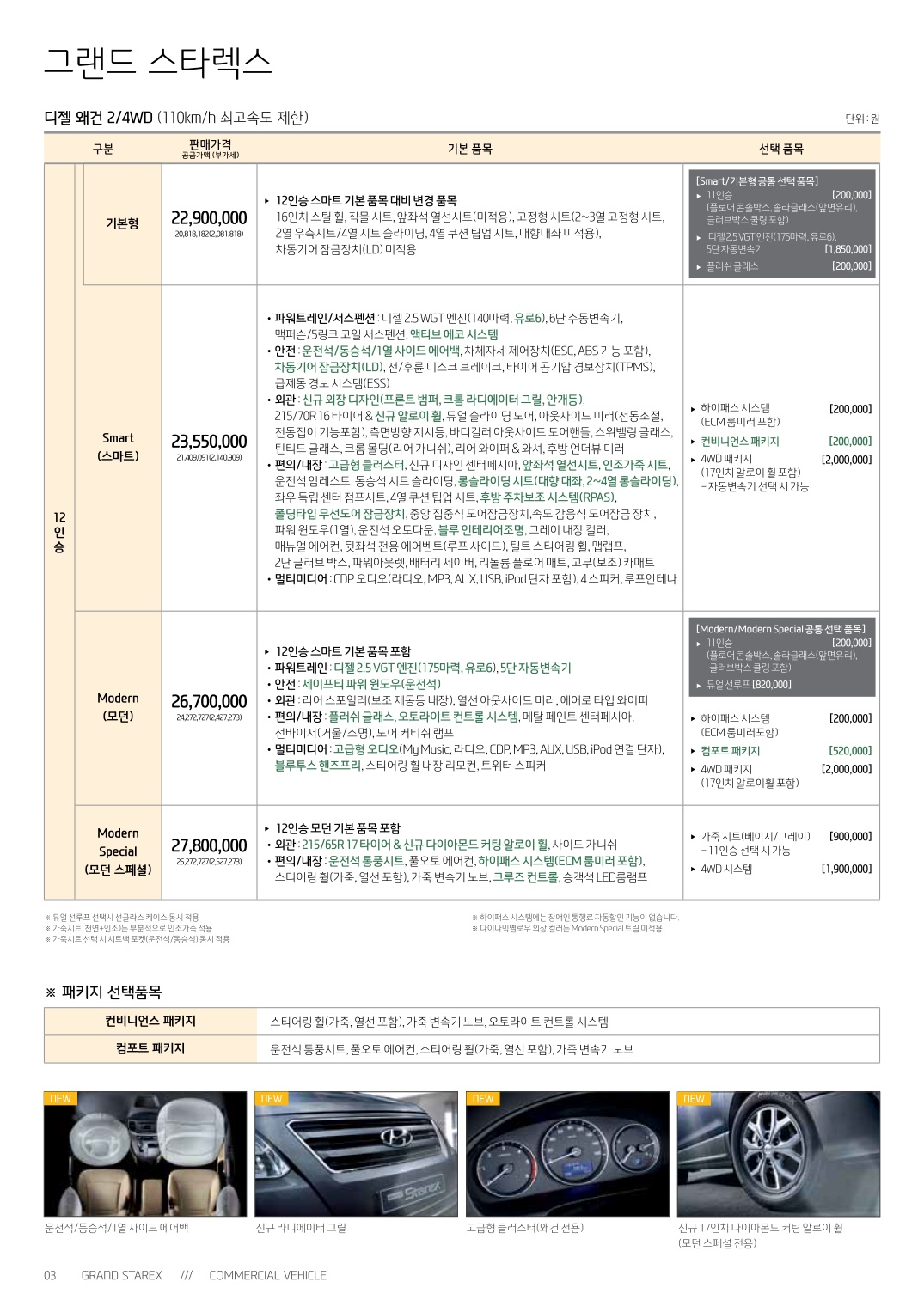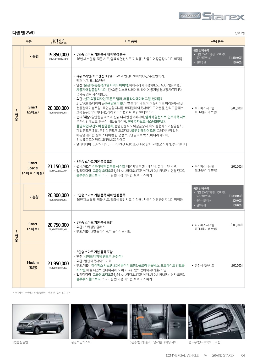 2015년 4월 그랜드 스타렉스 특장차 신차가격표
