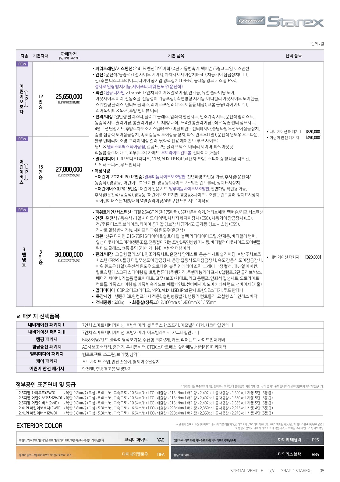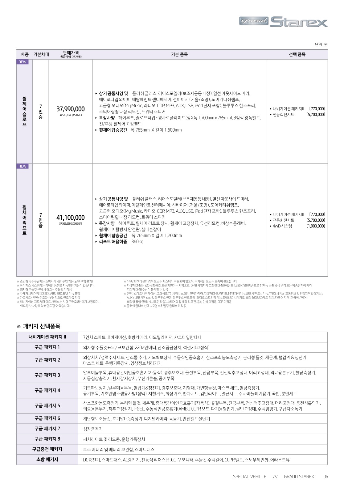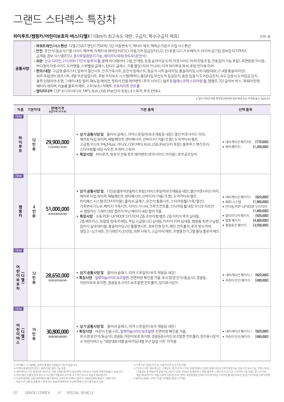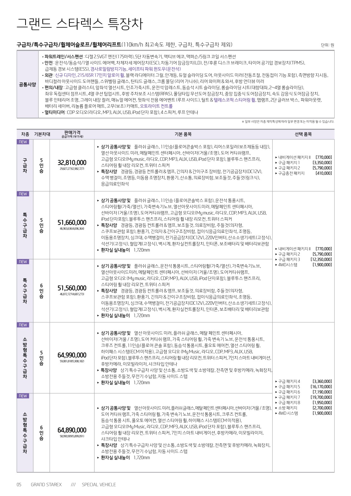 2018년 5월 그랜드스타렉스 특장차(구급차/어린이차/휠체어차/캠핑카) 신차가격표