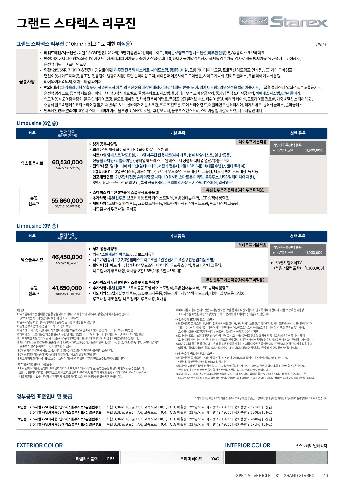 2020년 2월 그랜드 스타렉스 리무진 신차가격표