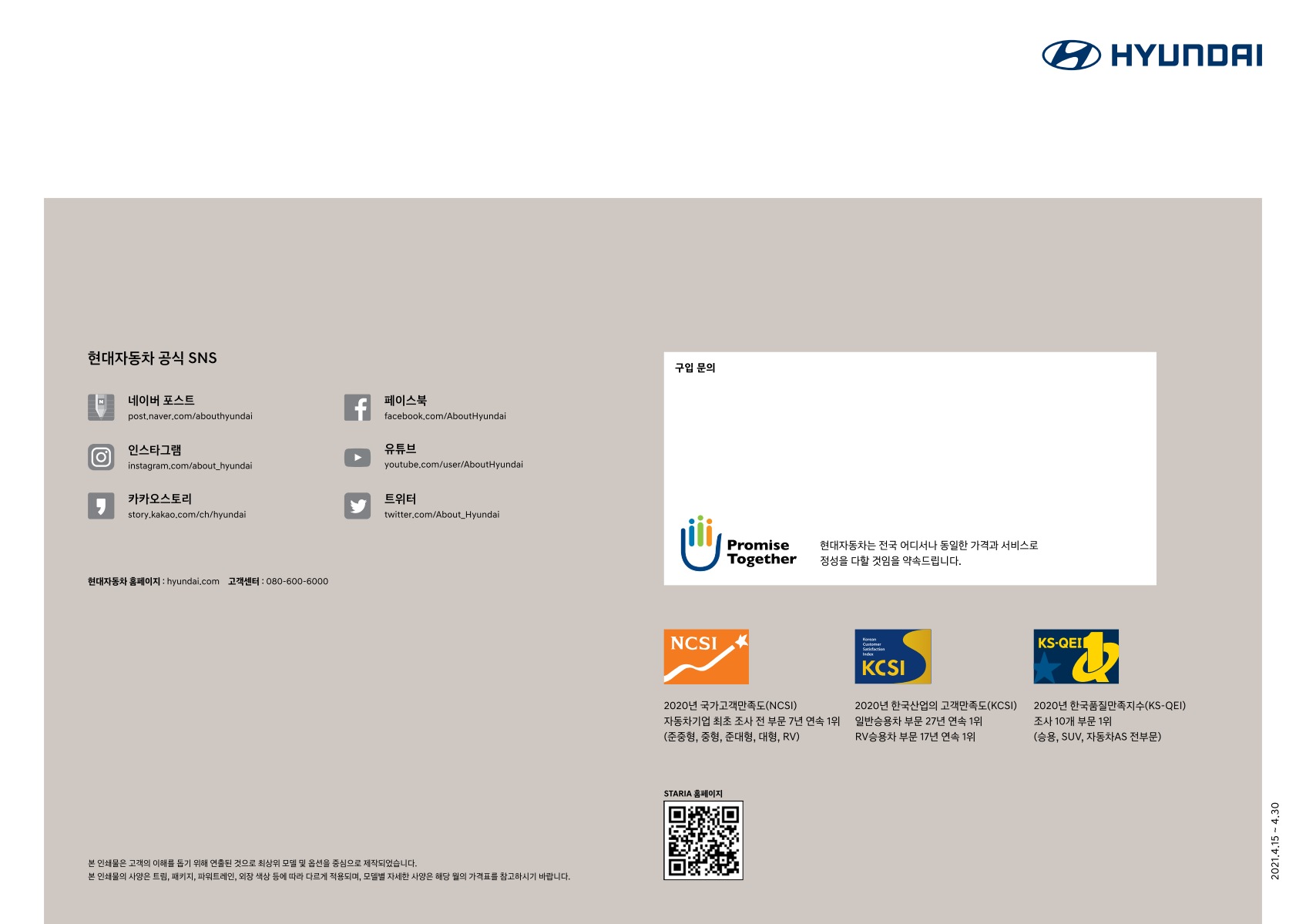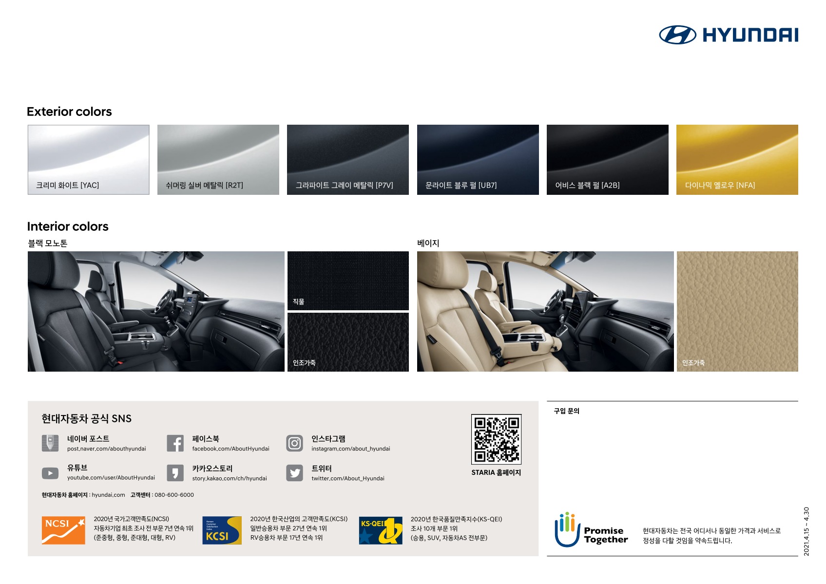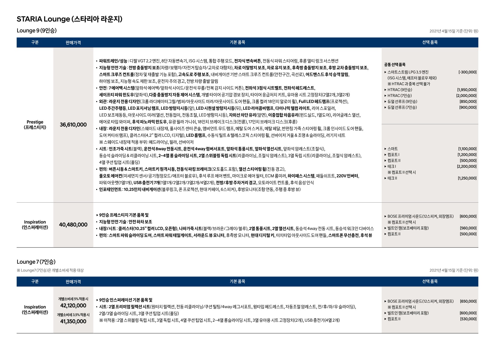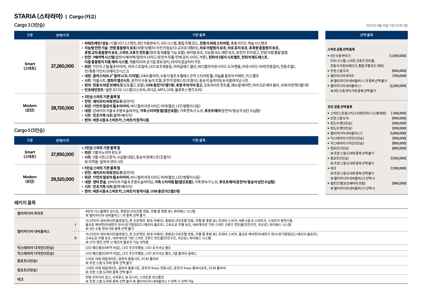 2021년 3월 스타리아 & 스타리아 라운지 신차가격표 (사전예약용)