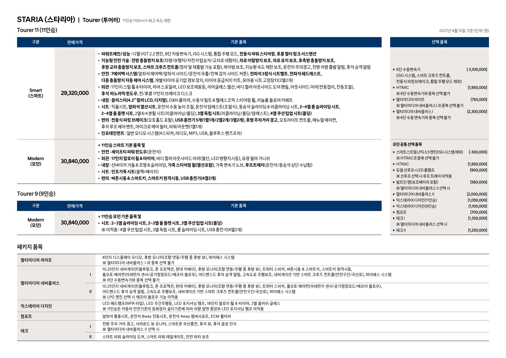 2021년 4월 스타리아 신차가격표 (스타리아 출시)