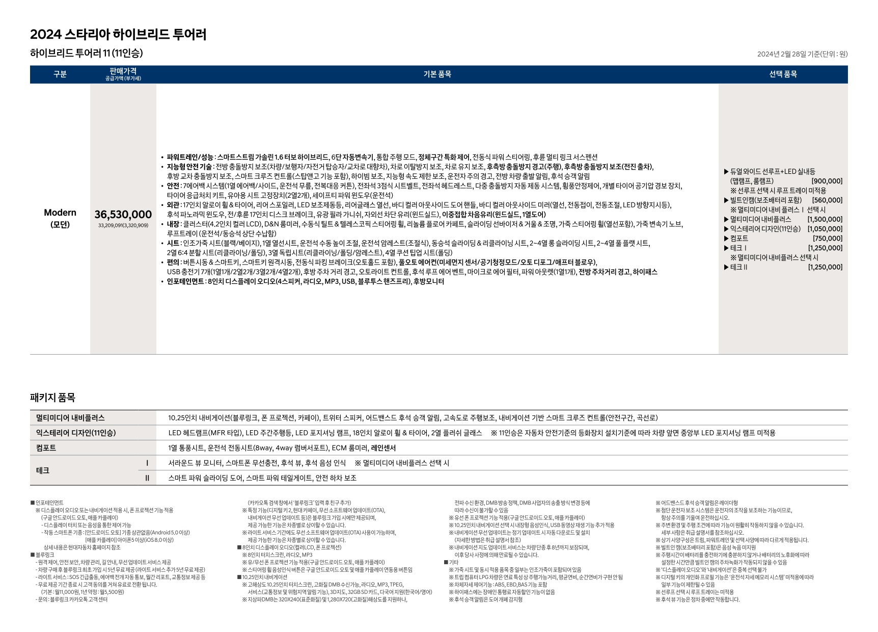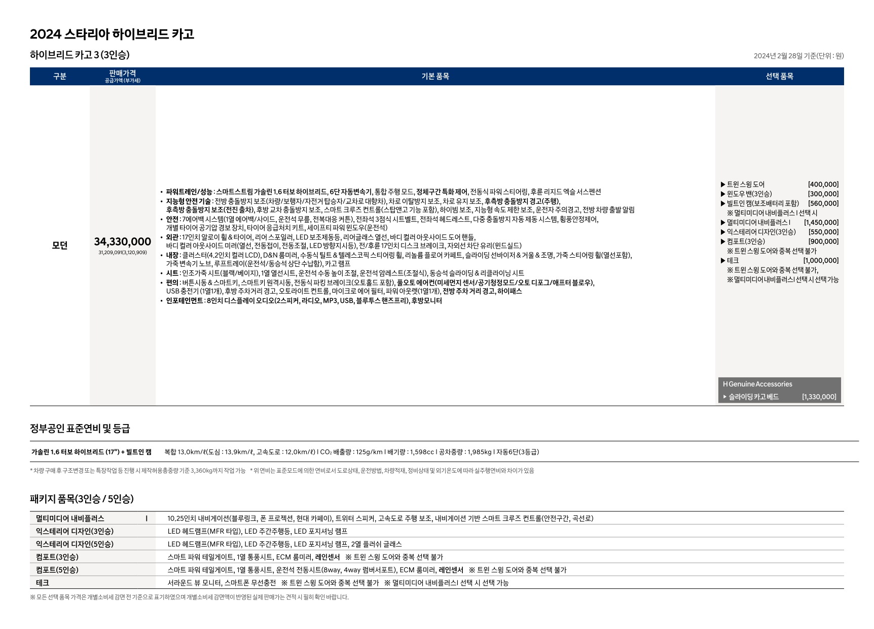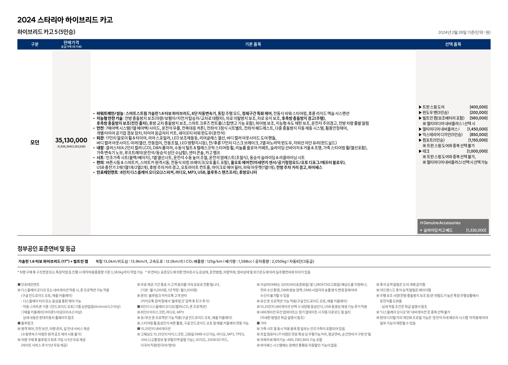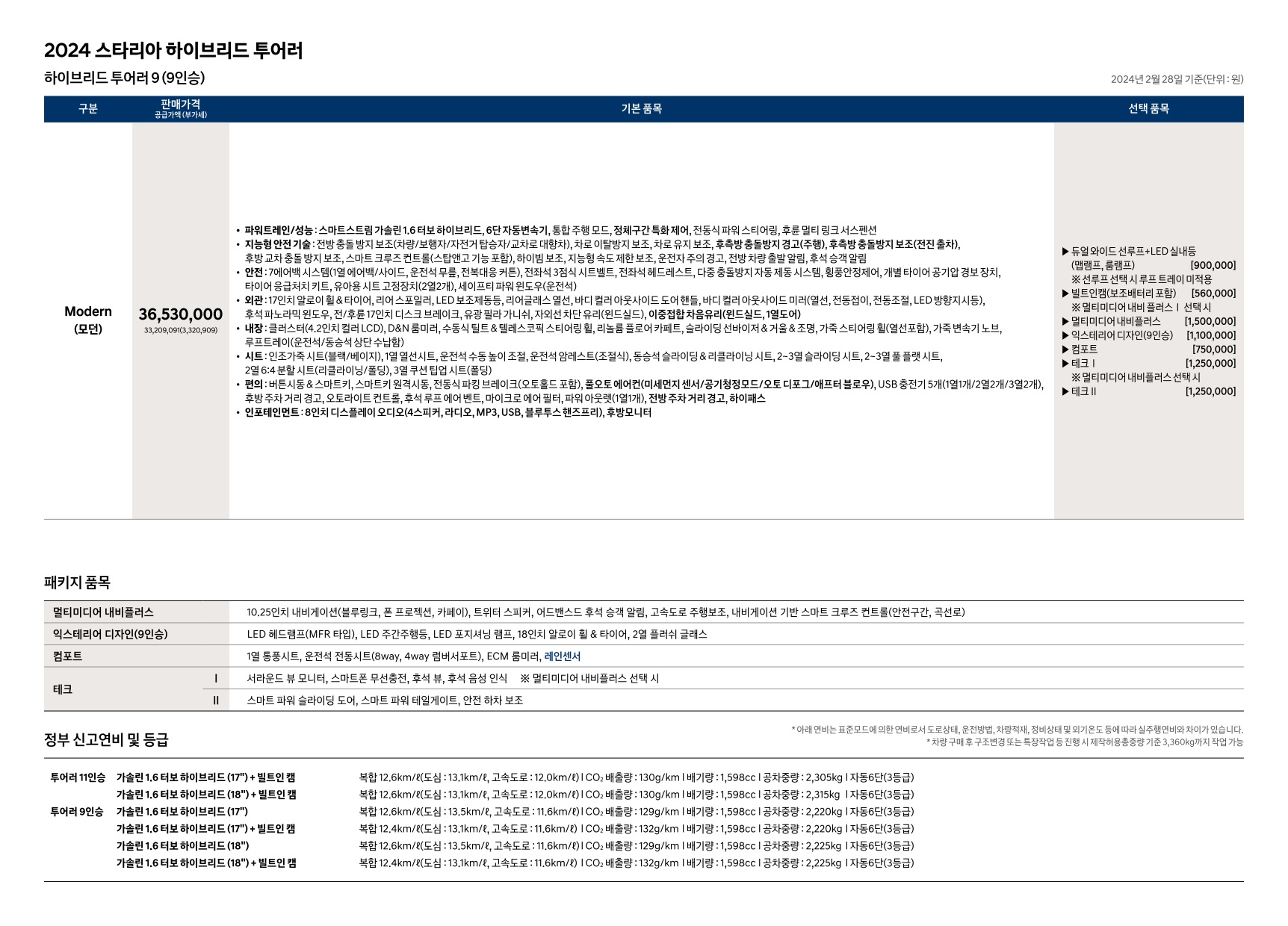 2024년 2월 스타리아 신차가격표 (스타리아 1.6 하이브리드 출시 사전계약용)