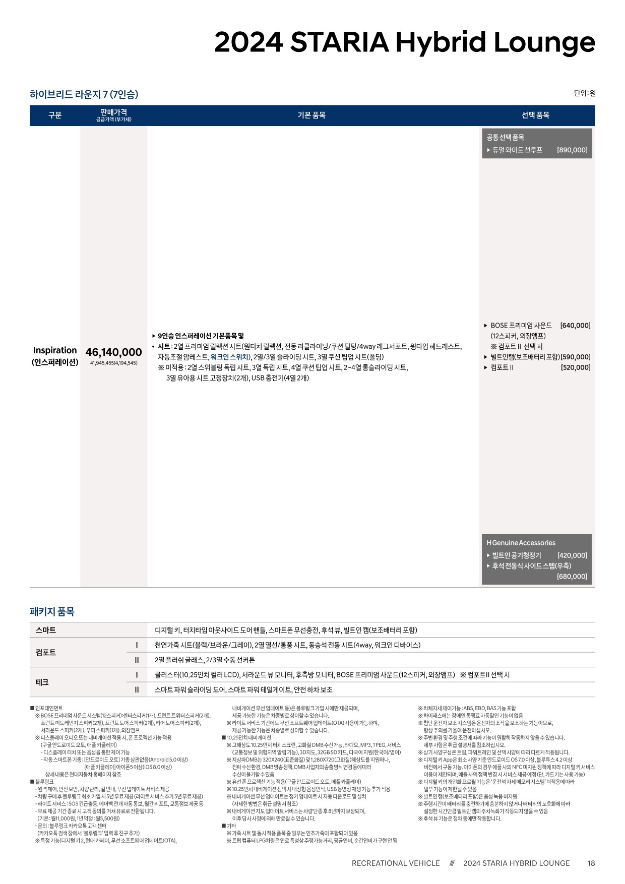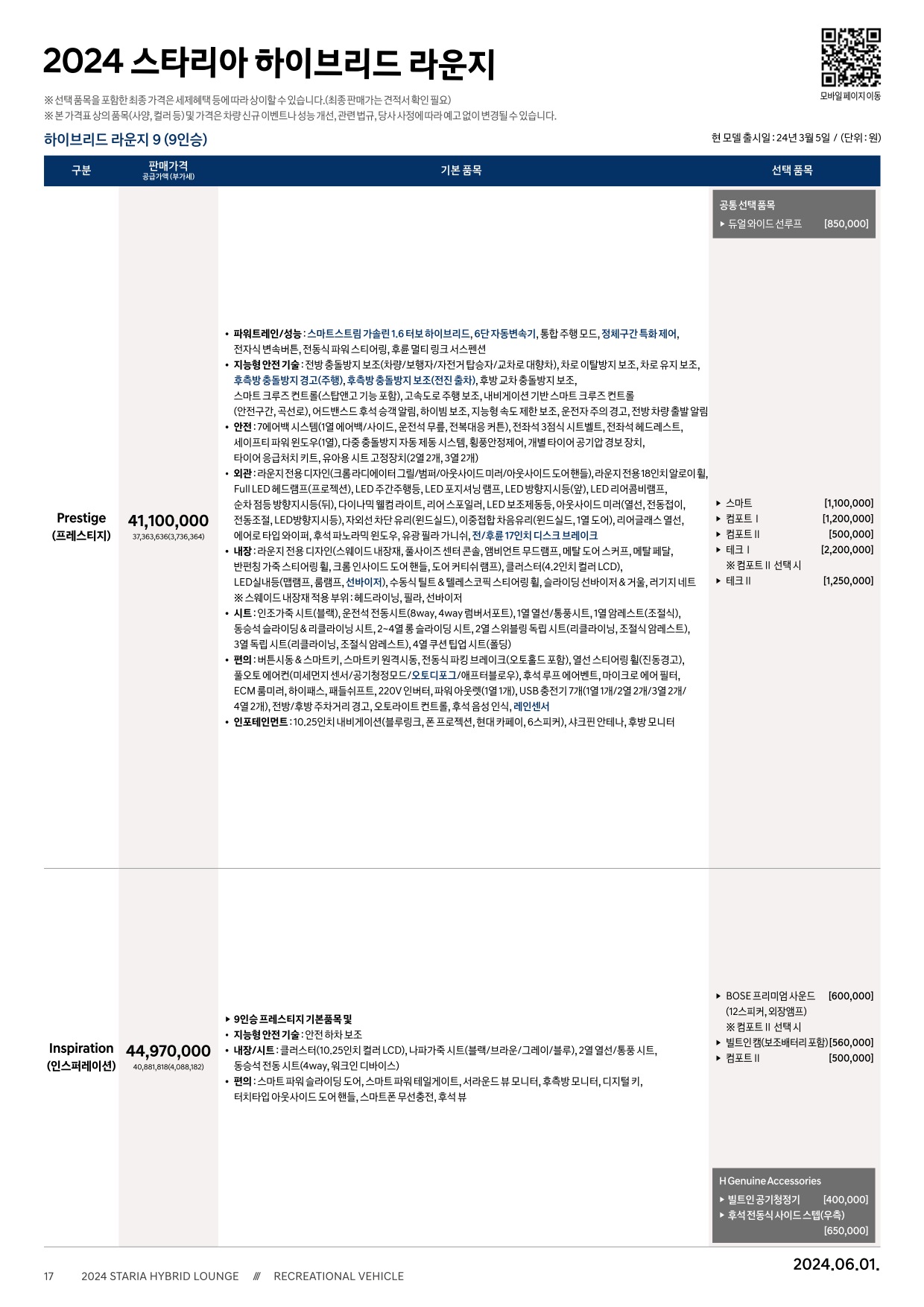 2024년 6월 스타리아 라운지 & 스타리아 라운지 하이브리드 신차가격표