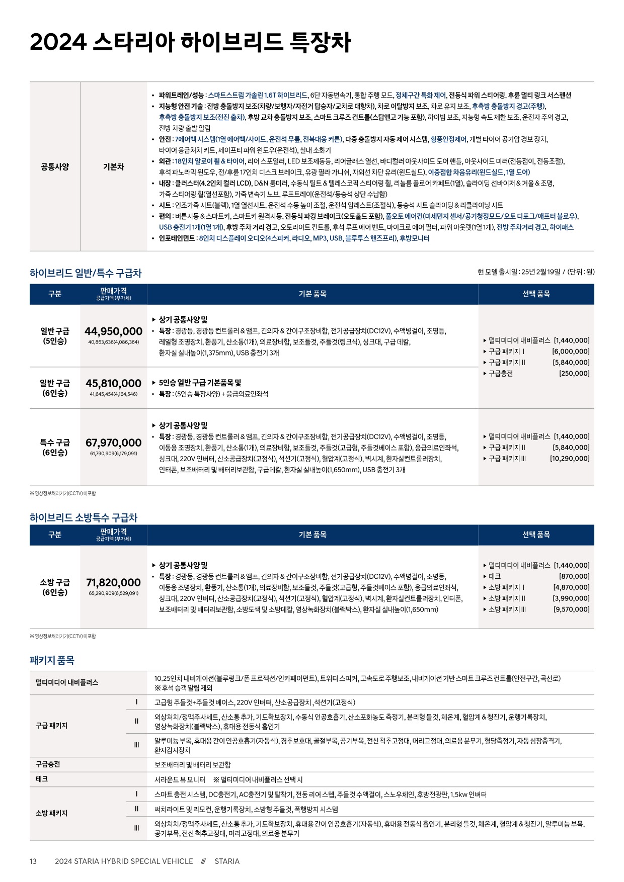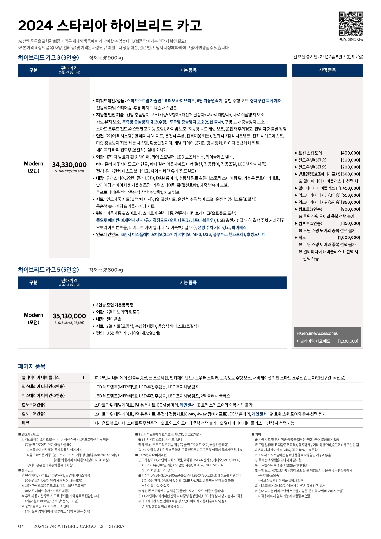 2025년 5월 스타리아 하이브리드 투어러 & 카고 신차가격표