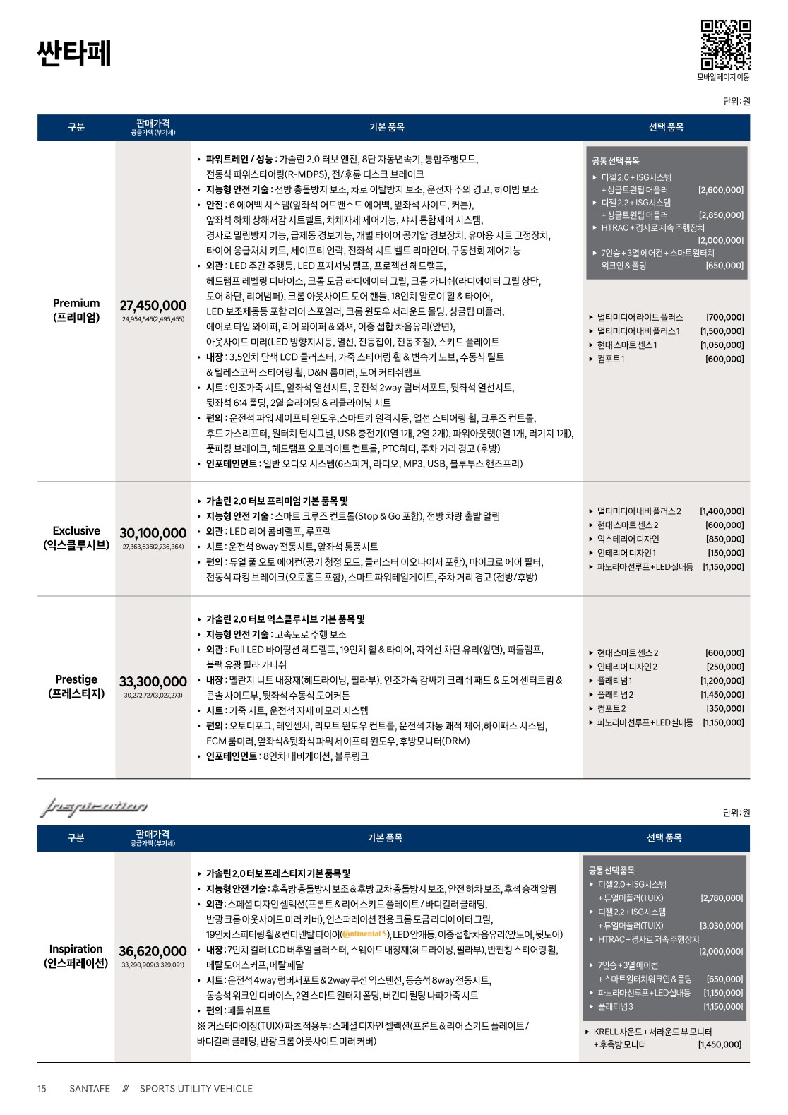 2020년 2월 싼타페 신차가격표