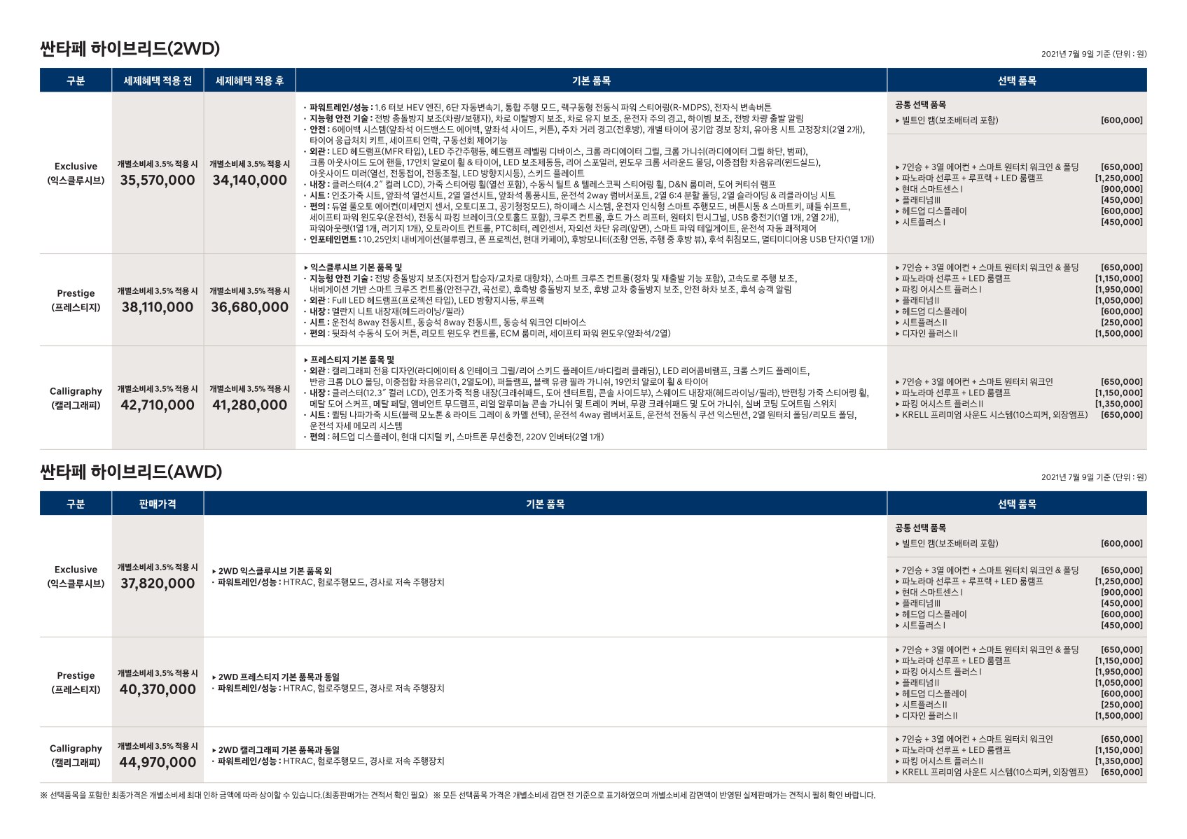 2021년 7월 싼타페 하이브리드 가격표 (싼타페 하이브리드 출시)