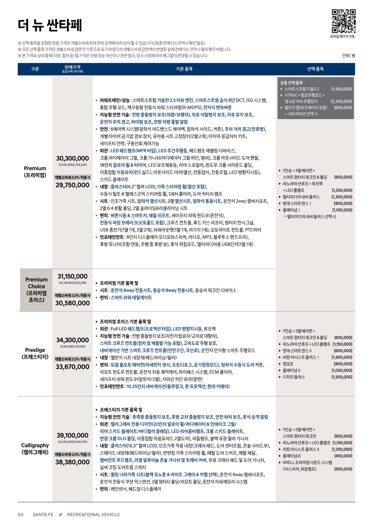 2020년 7월 싼타페 신차가격표 (더 뉴 싼타페 출시)