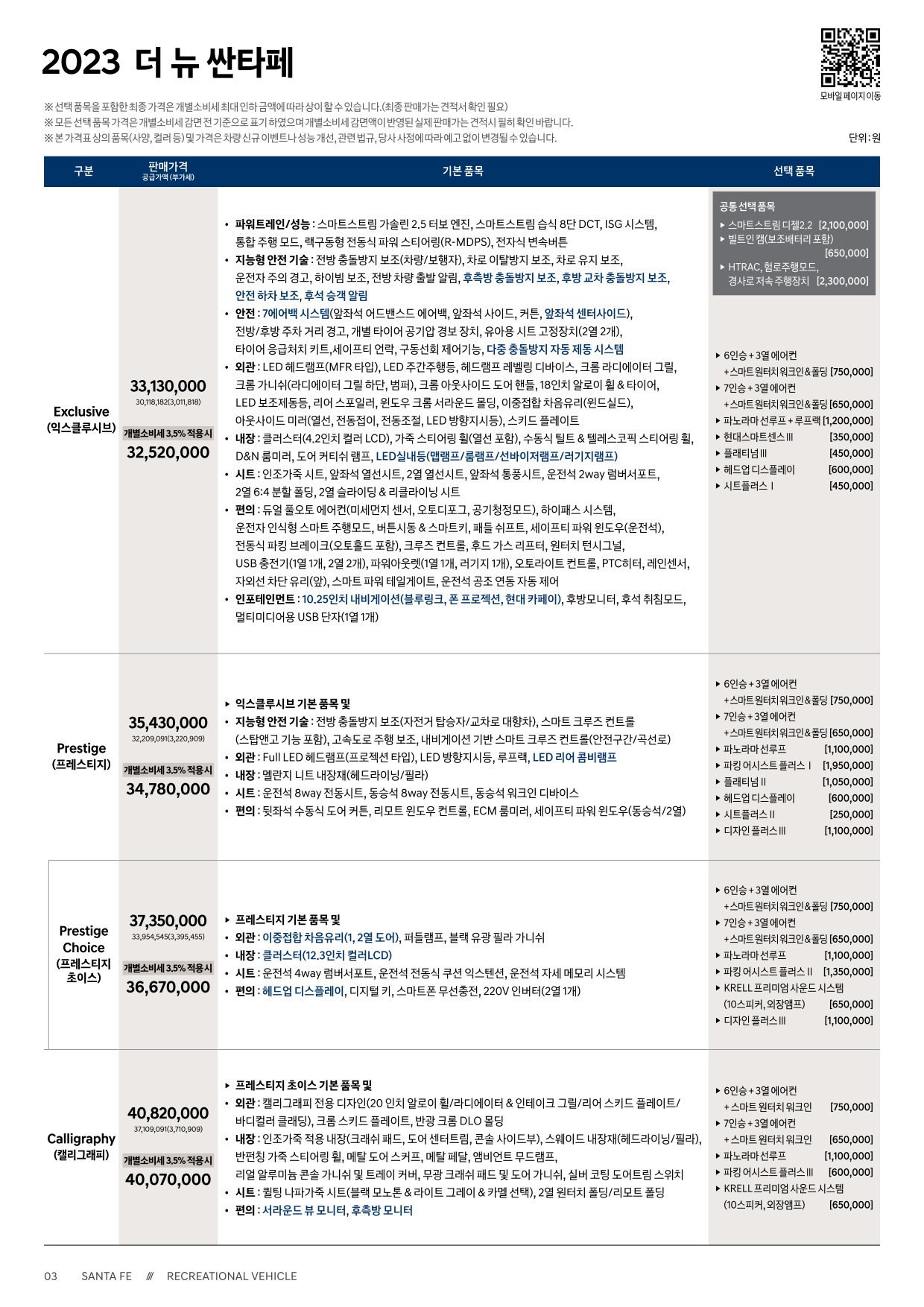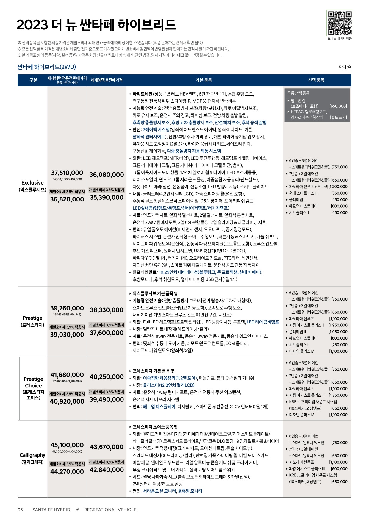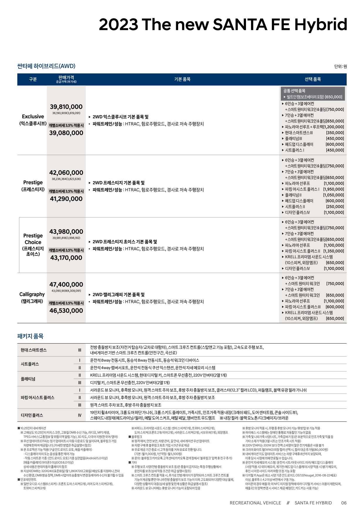 2023년 8월 싼타페 & 싼타페 하이브리드 신차가격표 (디 올뉴 싼타페 출시)