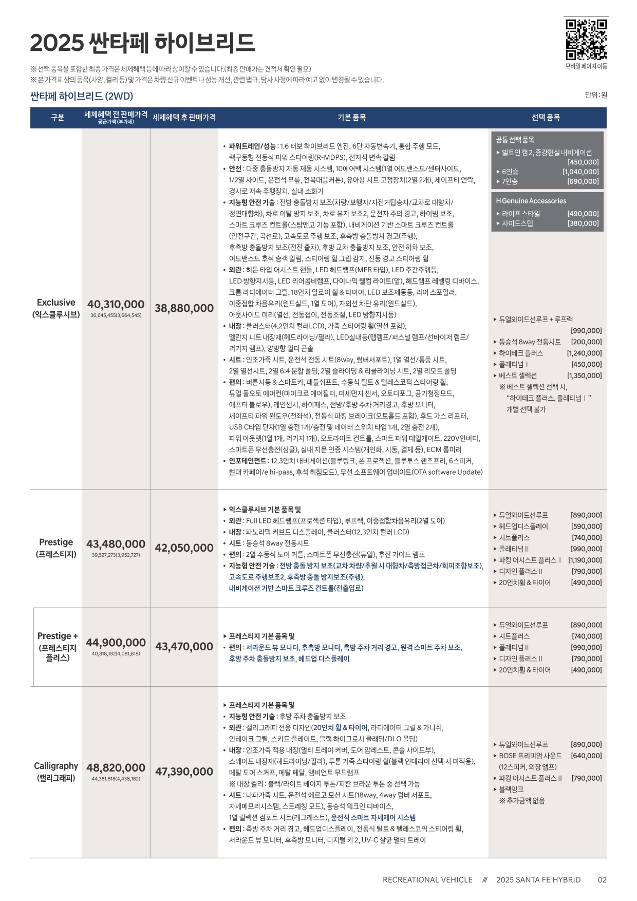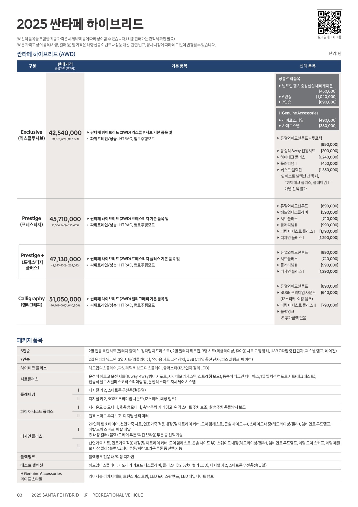2024년 6월 싼타페 & 싼타페 하이브리드 신차각격표