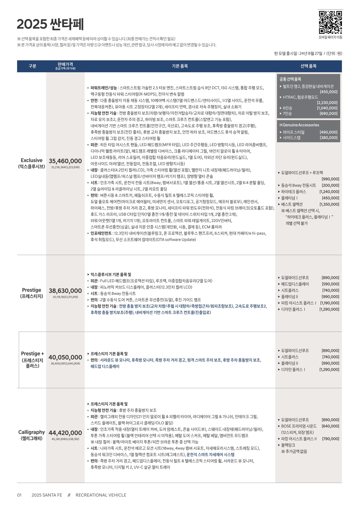 2024년 8월 싼타페 신차가격표 (2025년형 싼타페 출시)