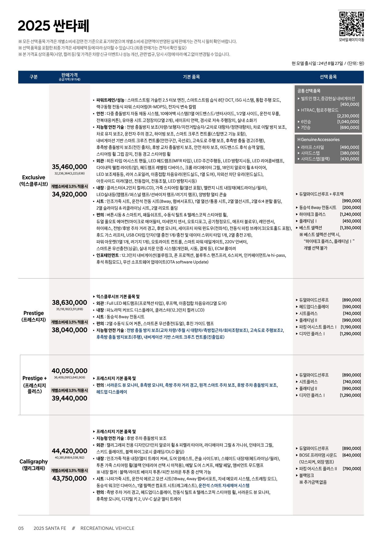 2025년 5월 싼타페 신차가격표