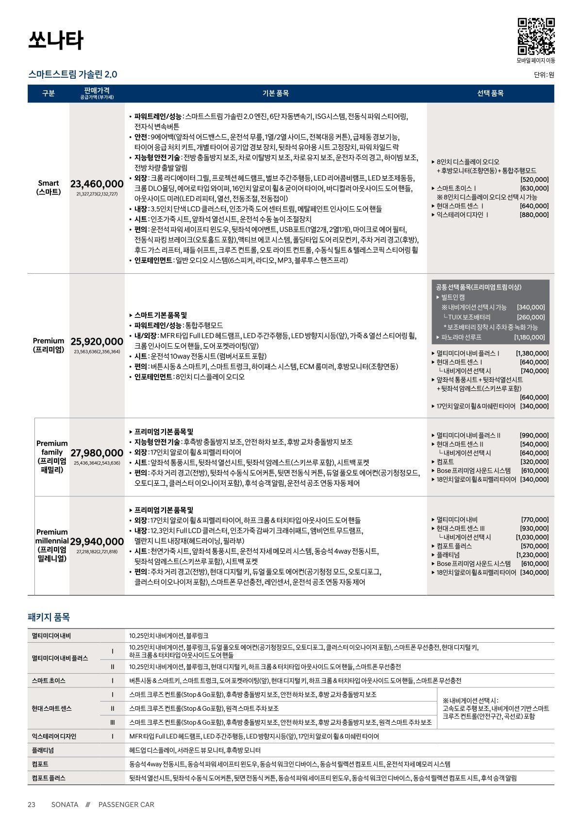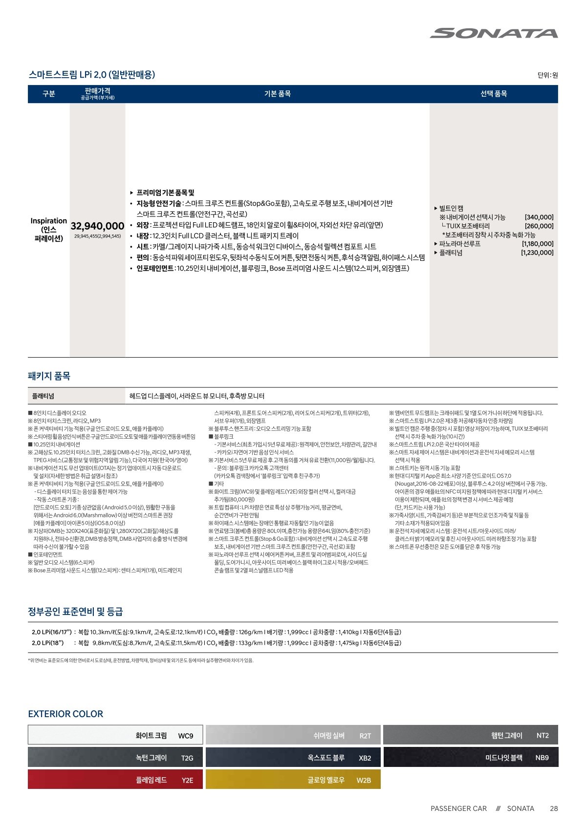 2020년 2월 쏘나타 신차가격표 (DN8 쏘나타 2.0, 센슈어스, 하이브리드, LPI 신차가격표)