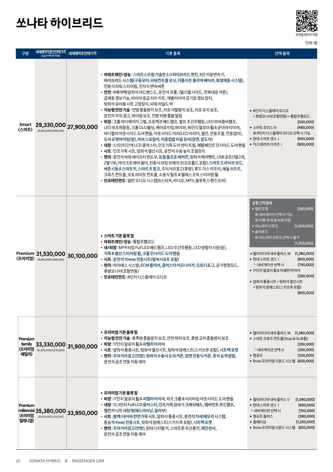 2020년 2월 쏘나타 신차가격표 (DN8 쏘나타 2.0, 센슈어스, 하이브리드, LPI 신차가격표)