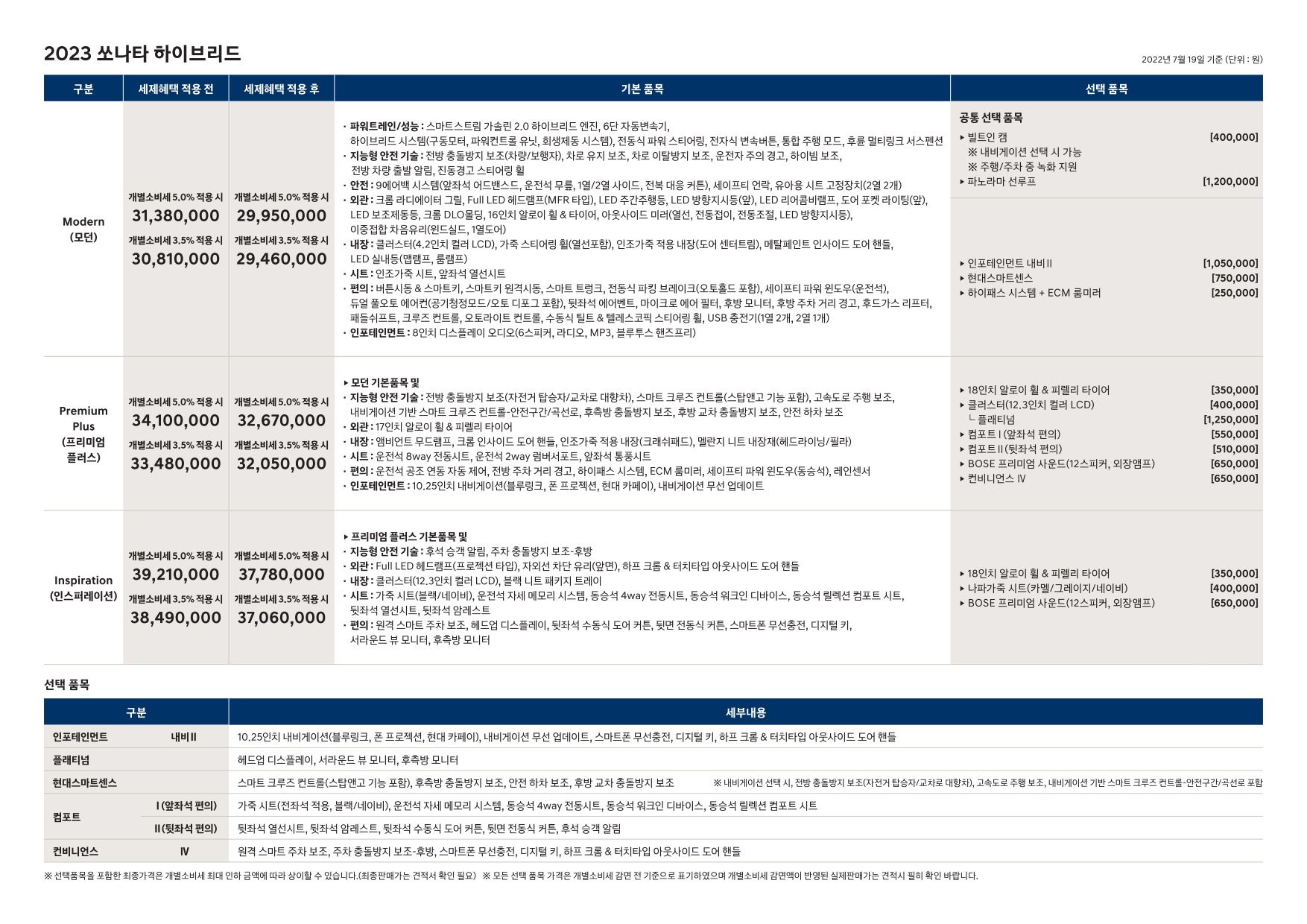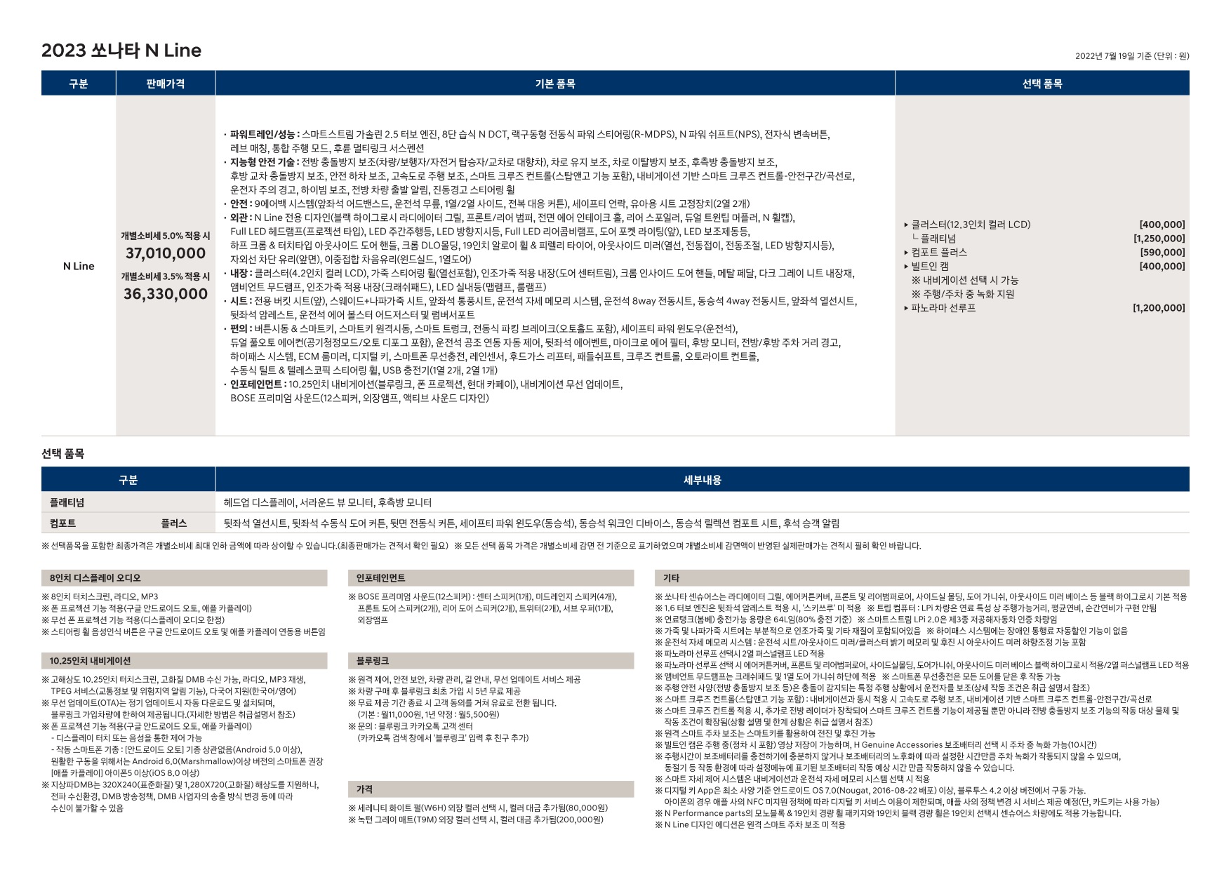 2022년 7월 쏘나타 가격표 (2023년형 쏘나타 출시) 하이브리드&N라인