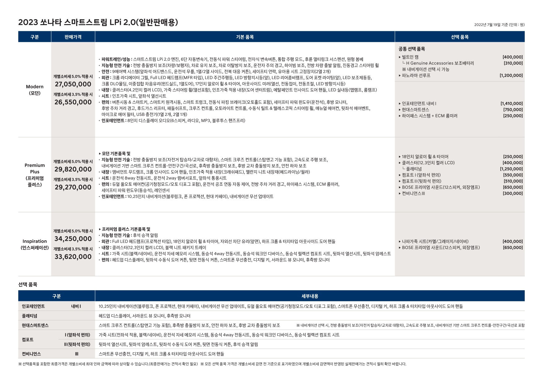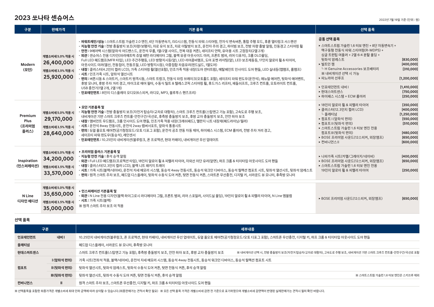 2022년 7월 쏘나타 가격표 (2023년형 쏘나타 출시)