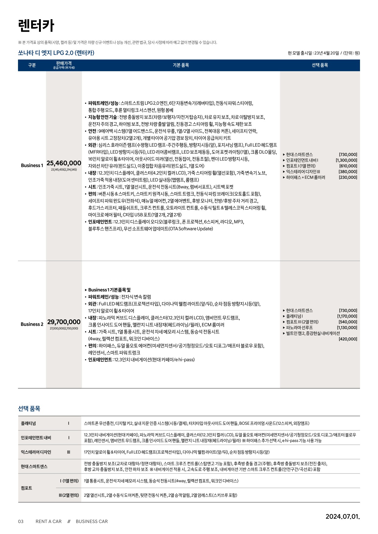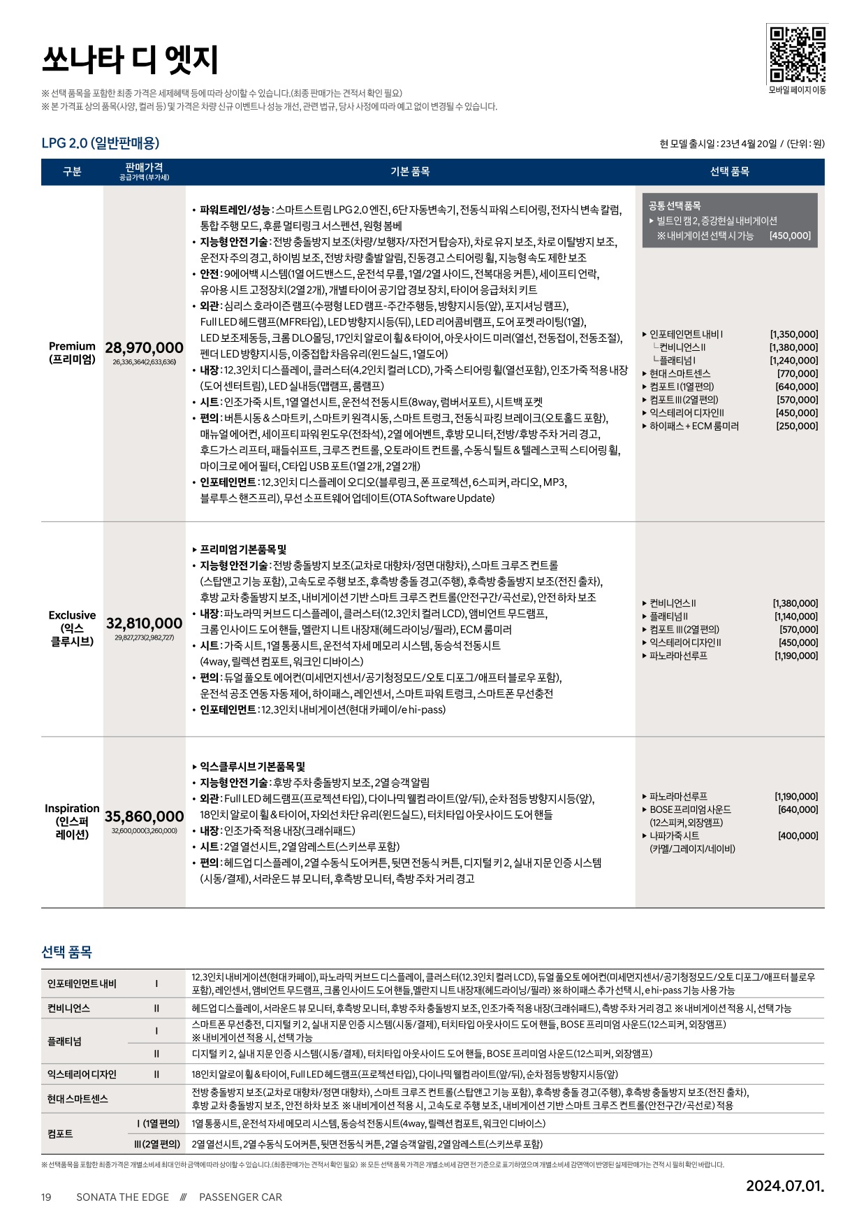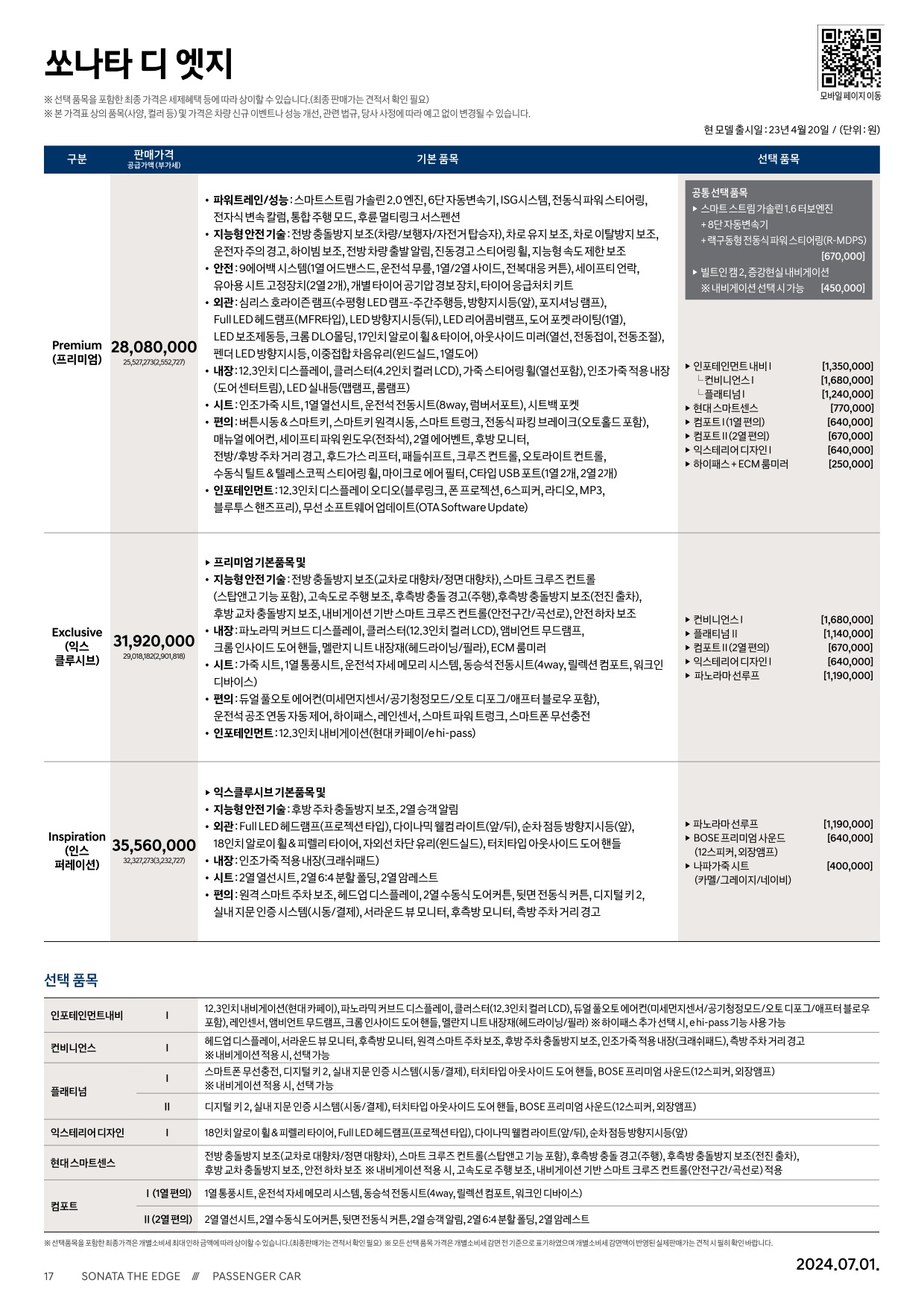 2024년 7월 쏘나타 & 쏘나타 하이브리드 신차가격표