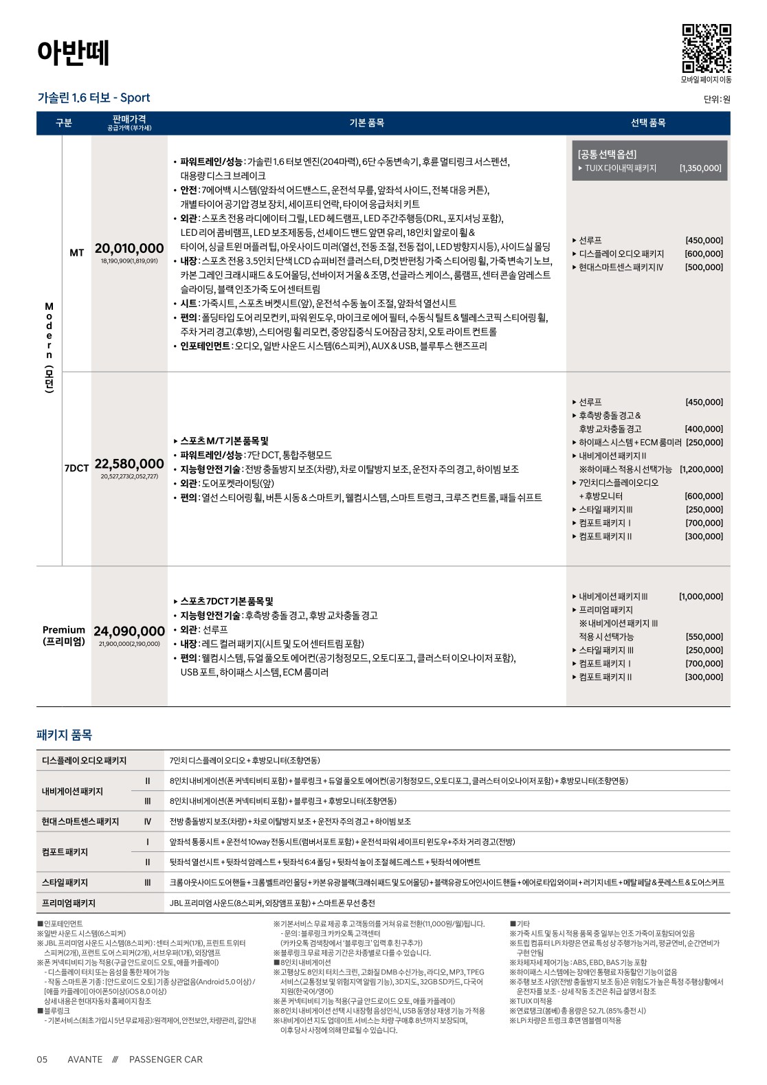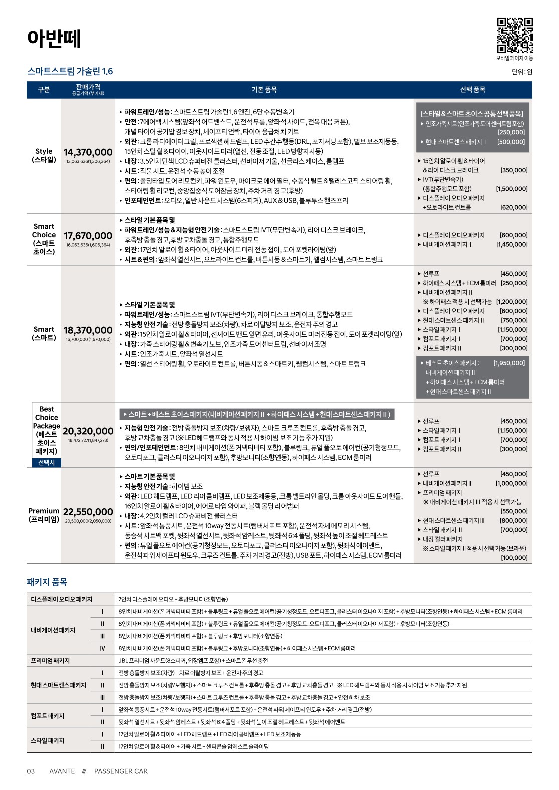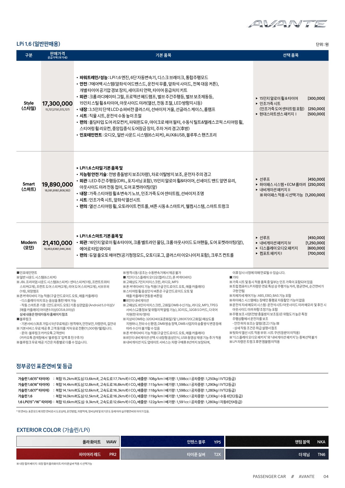 2020년 4월 아반떼 신차가격표 (아반떼CN7 신차가격표)