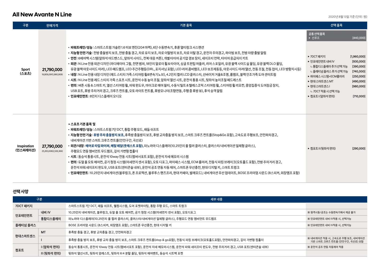 2020년 8월 아반떼 N라인 신차가격표 (CN7 아반떼 N라인 출시)
