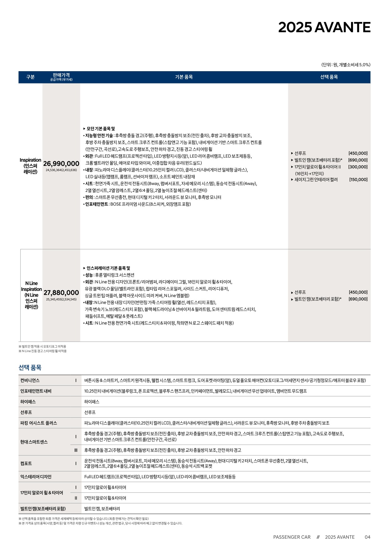 ※ 본 가격표의 모든 저작권은 해당 차량 제조사에 있습니다.