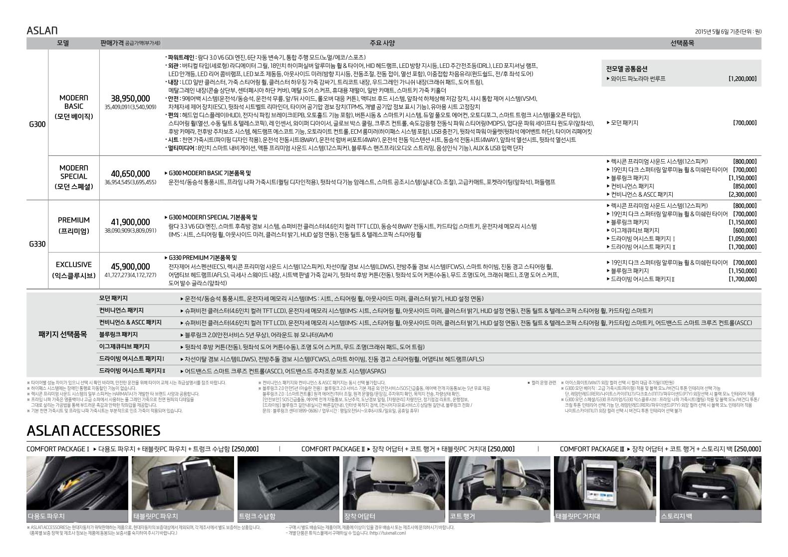 2015년 5월 아슬란 신차가격표