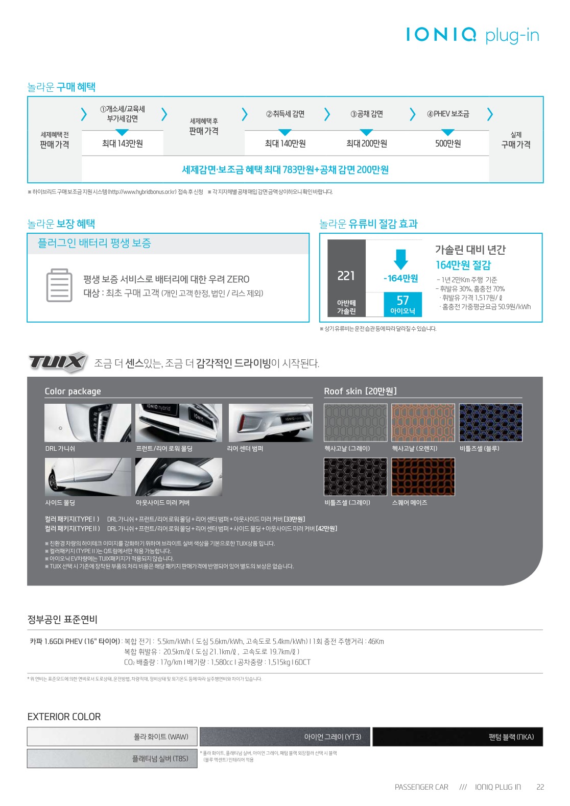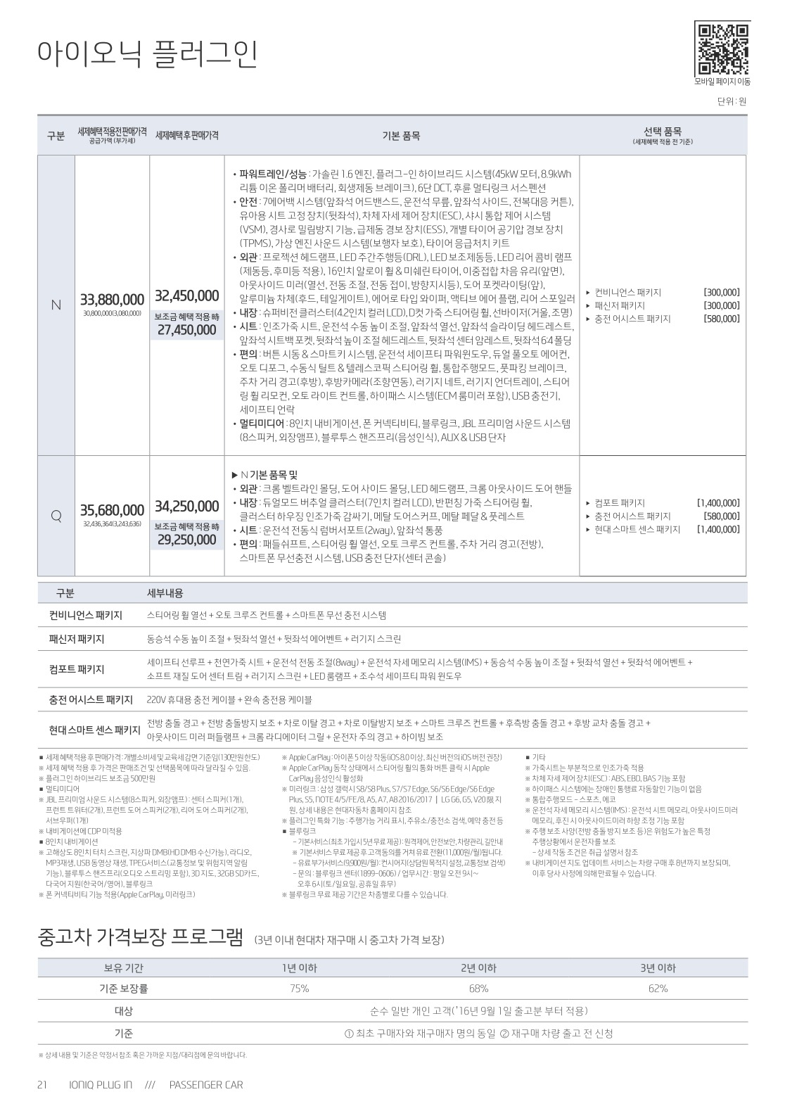 2018년 5월 아이오닉 PHEV (아이오닉 플러그인 하이브리드) 신차가격표