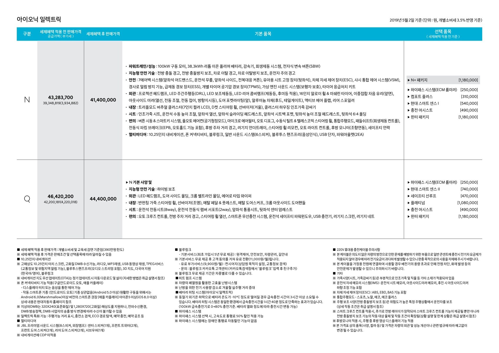 2019년 1월 아이오닉 & 아이오닉 플러그인 신차가격표