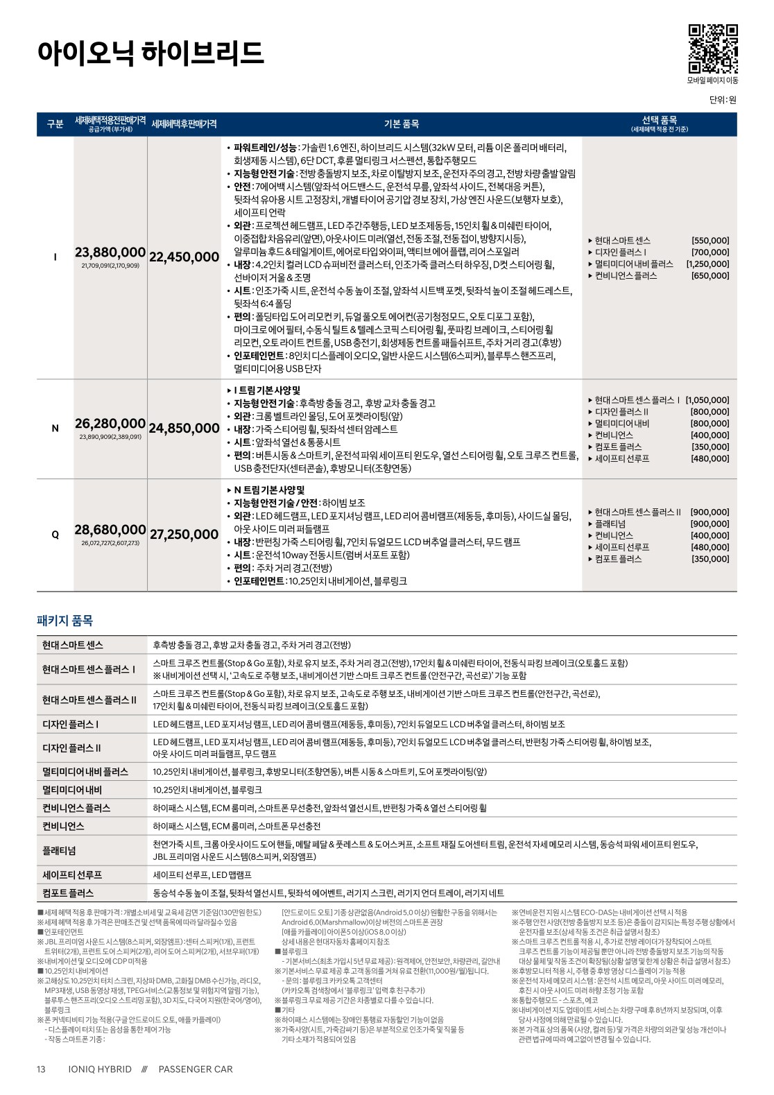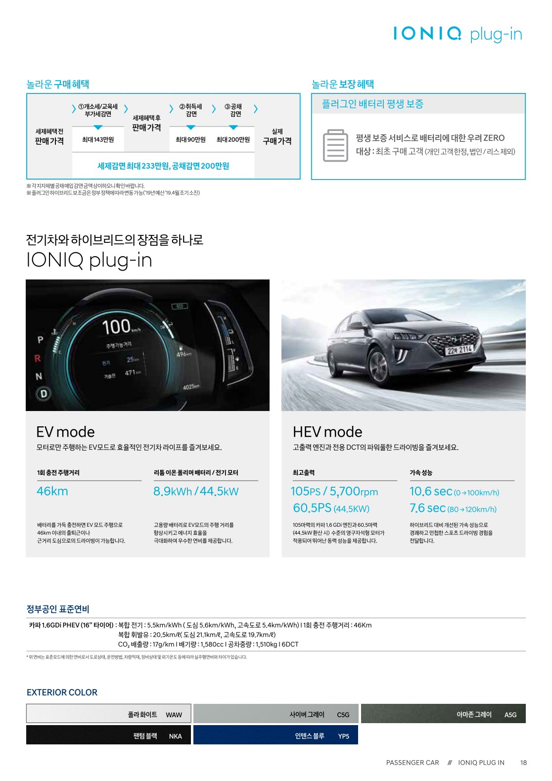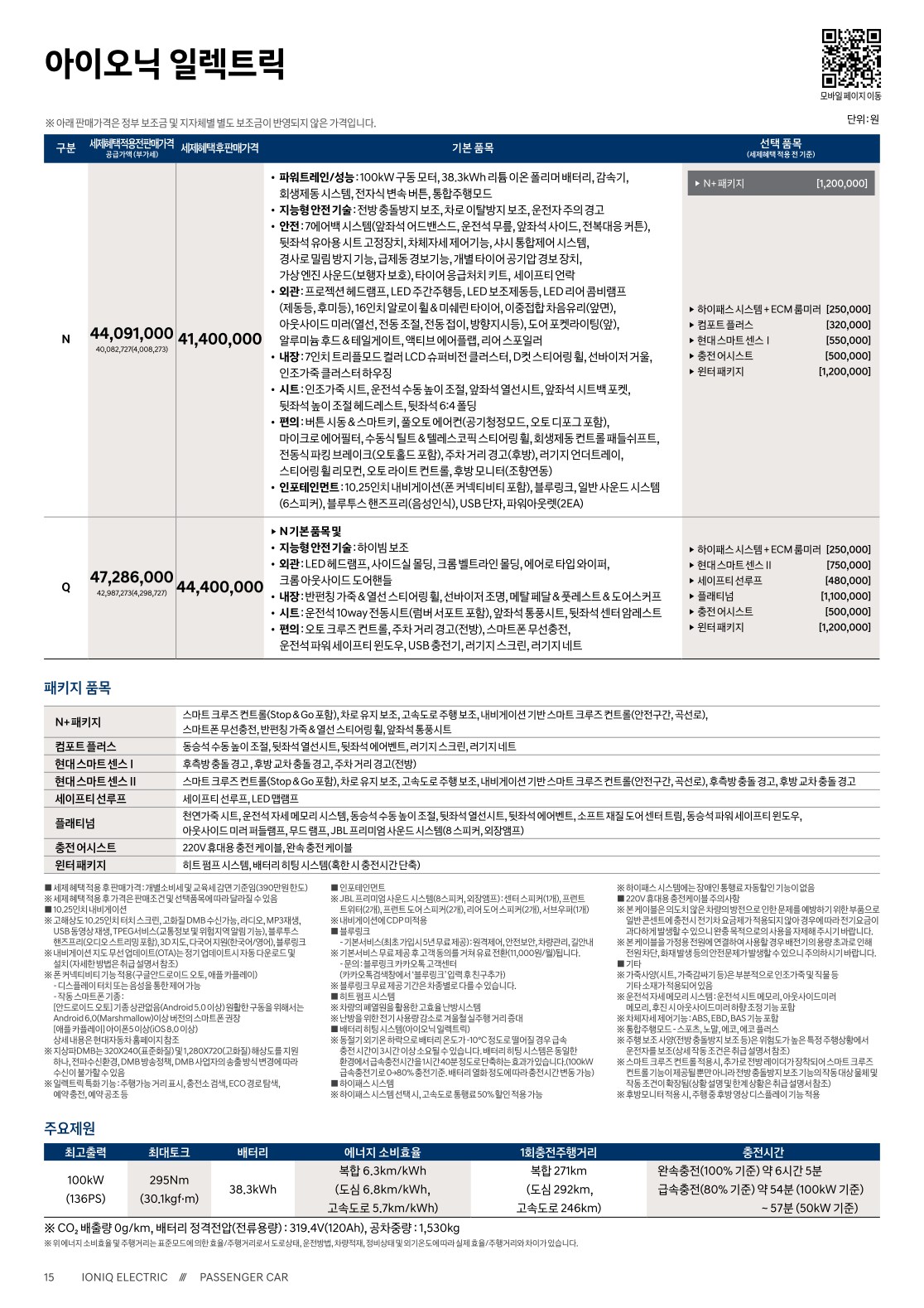 2020년 2월 아이오닉 , 아이오닉 플러그인 , 아이오닉 일렉트릭 신차가격표