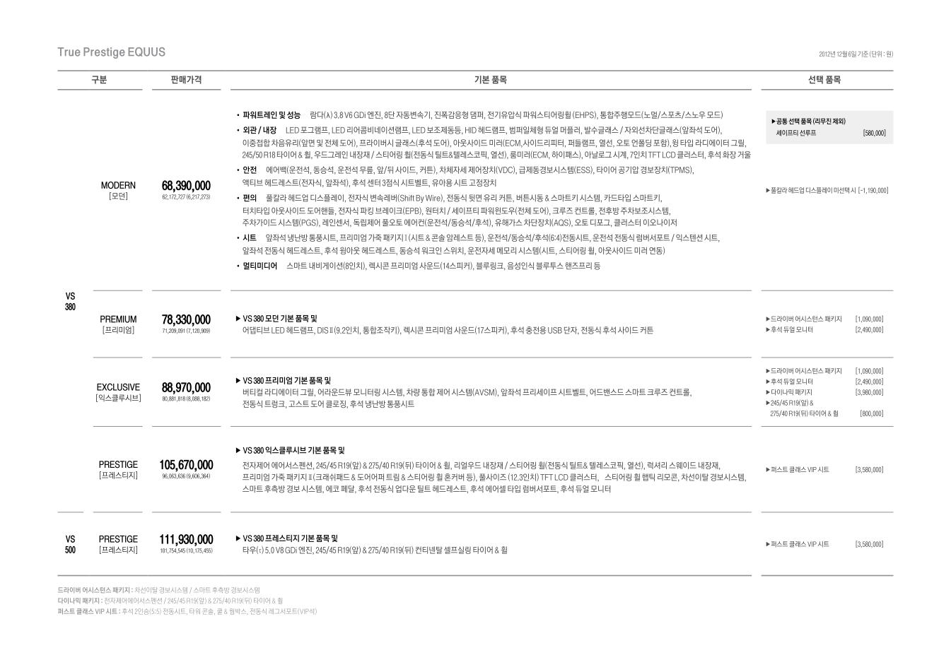 2012년 3월 에쿠스 신차가격표 (FTA 개별소비세인하 반영)