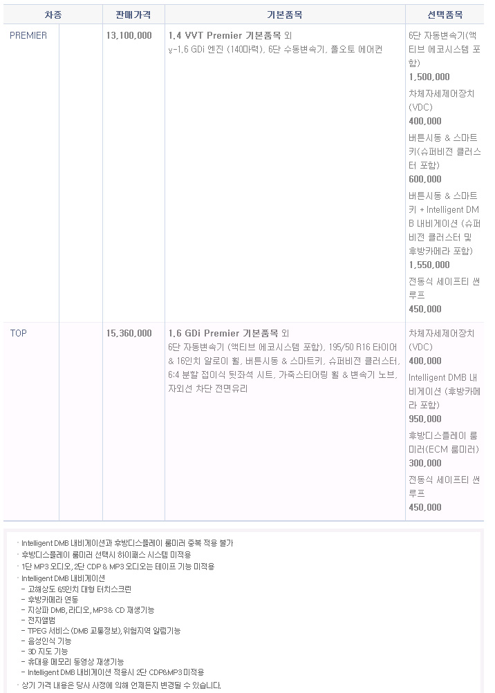 ※ 본 가격표의 모든 저작권은 해당 차량 제조사에 있습니다.