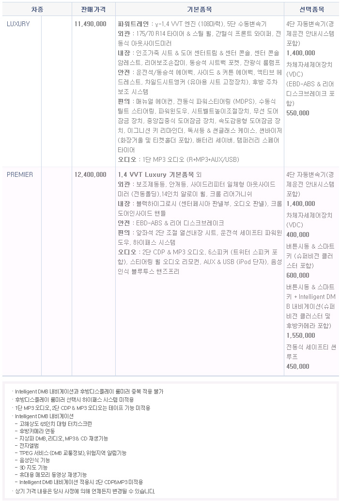2011년 3월 신형 엑센트(RB) & 위트 신차가격표