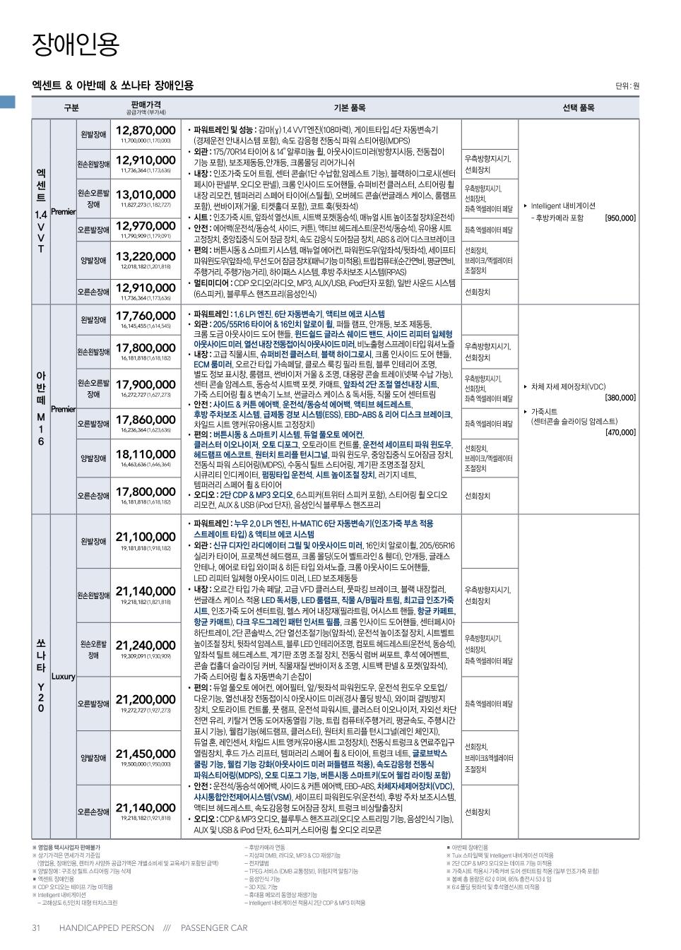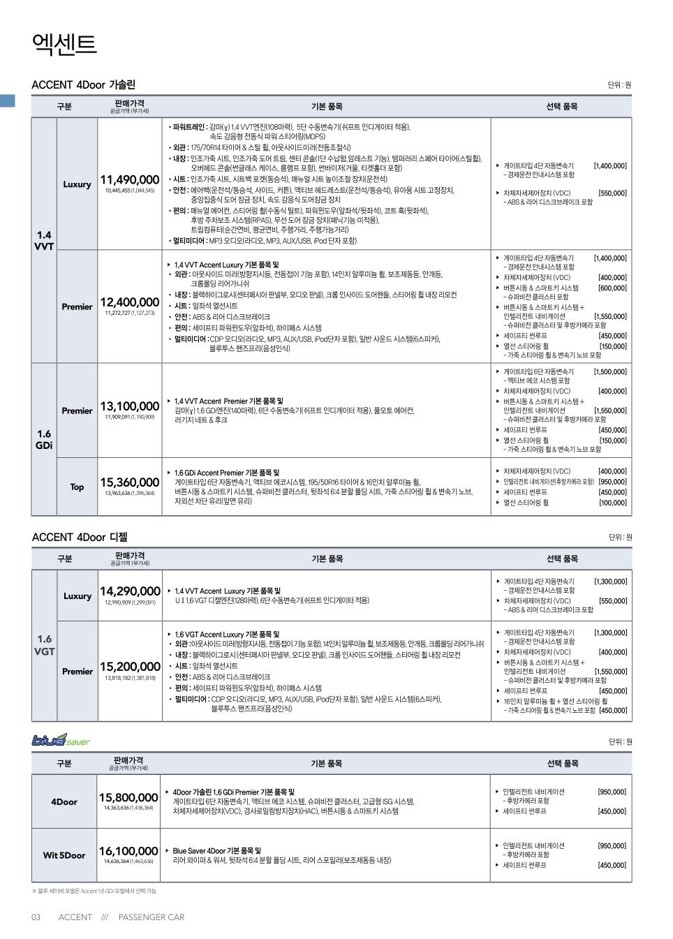 2011년 9월 신형 엑센트(RB) & 위트 신차가격표