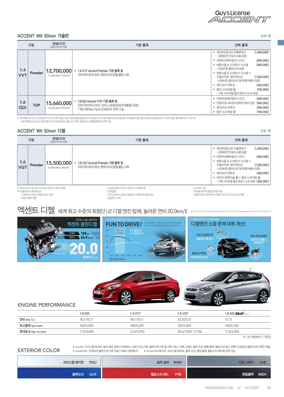 2013년 1월 신형 엑센트(RB) & 위트 신차가격표