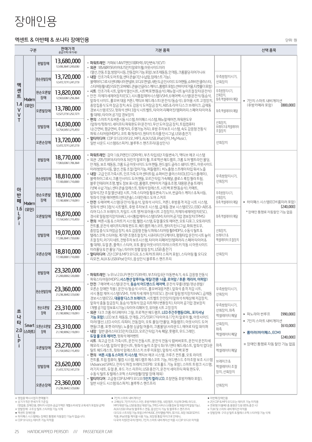 ※ 본 가격표의 모든 저작권은 해당 차량 제조사에 있습니다.