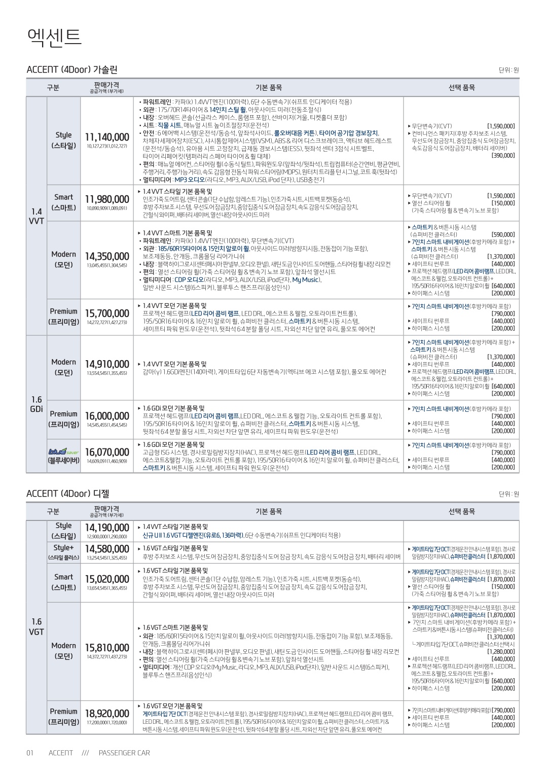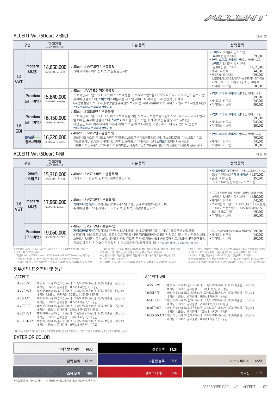 2015년 1월 신형 엑센트(RB) & 위트 디젤DCT 신차가격표
