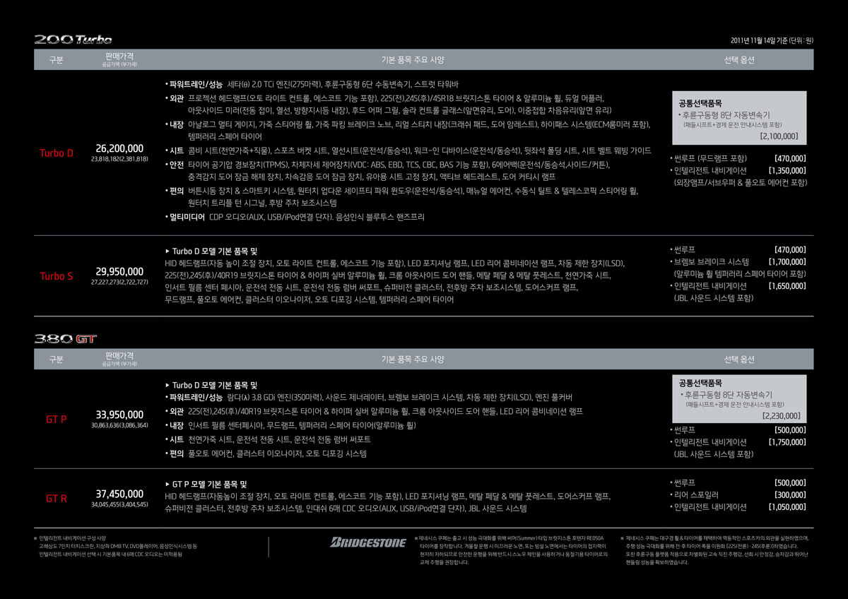 2011년 11월 신형 제네시스쿠페 신차가격표