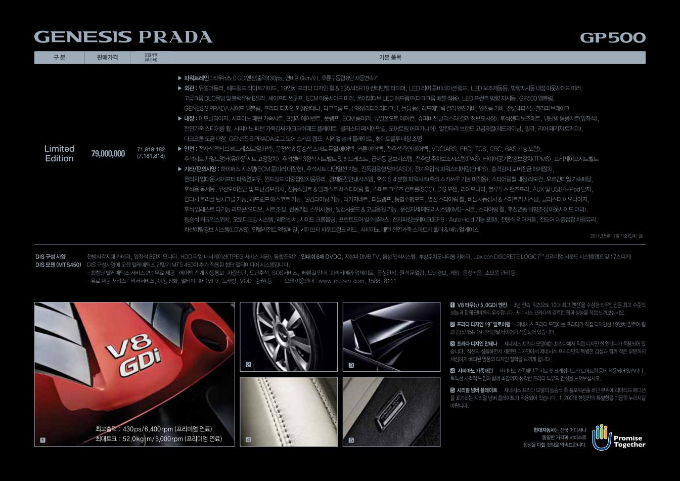 2011년 5월 제네시스 프라다 신차가격표