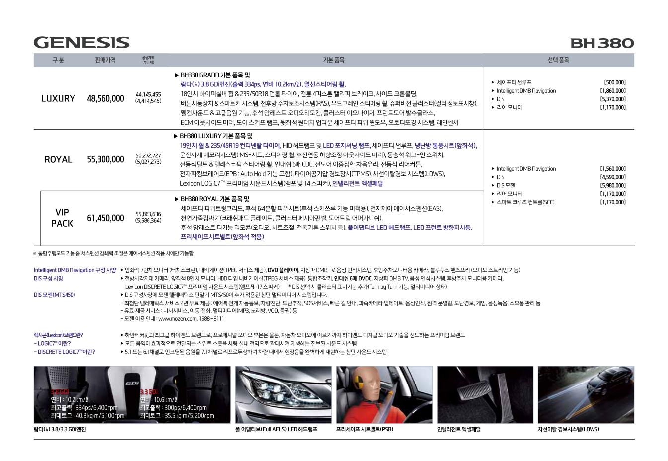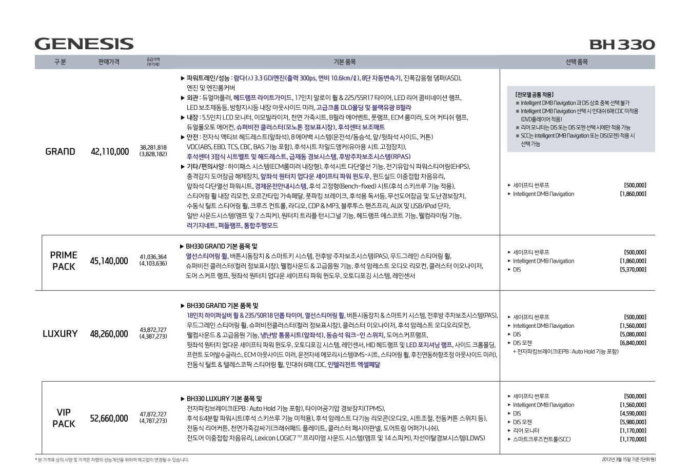 2012년 3월 제네시스 프라다 신차가격표 (FTA 개별소비세 인하 반영)