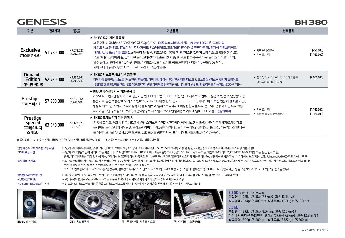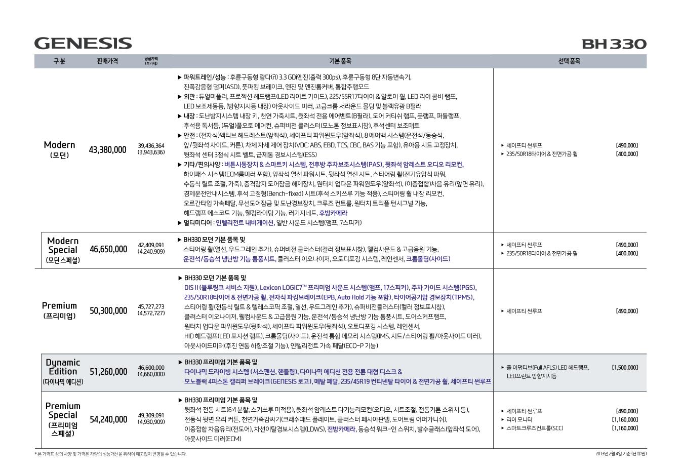 2013년 2월 제네시스 신차가격표 (다이나믹 에디션 추가)