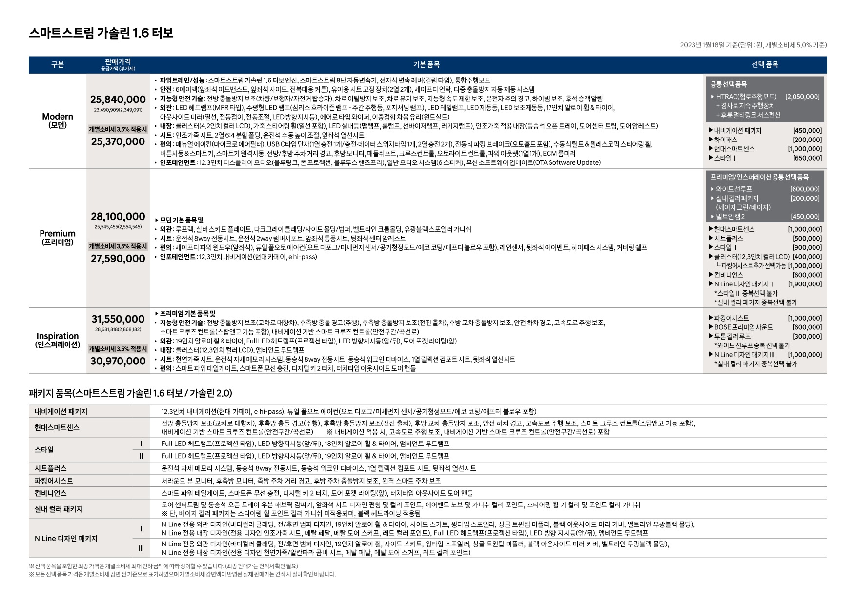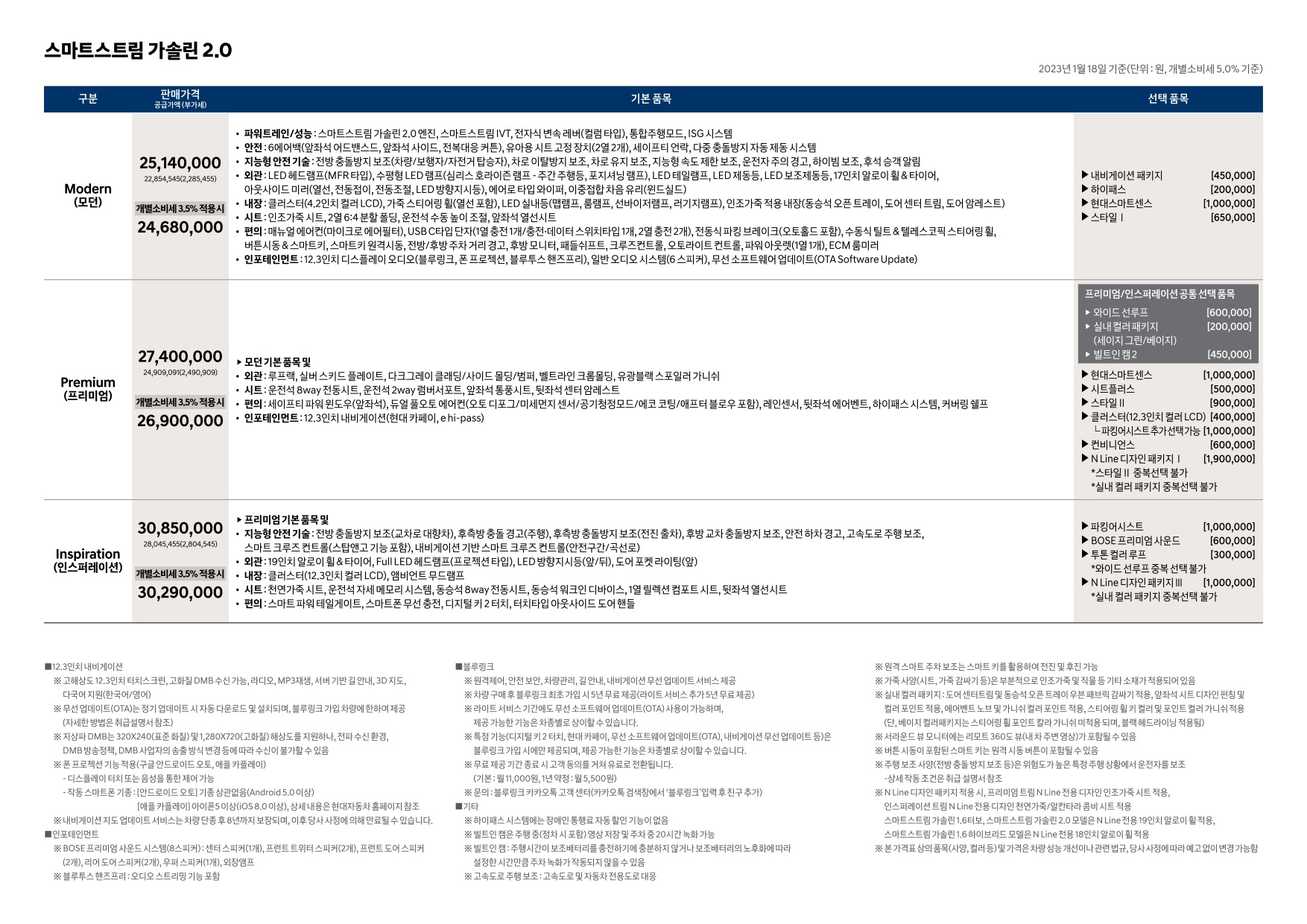 2023년 1월 코나 신차가격표 (디 올 뉴 코나 출시)