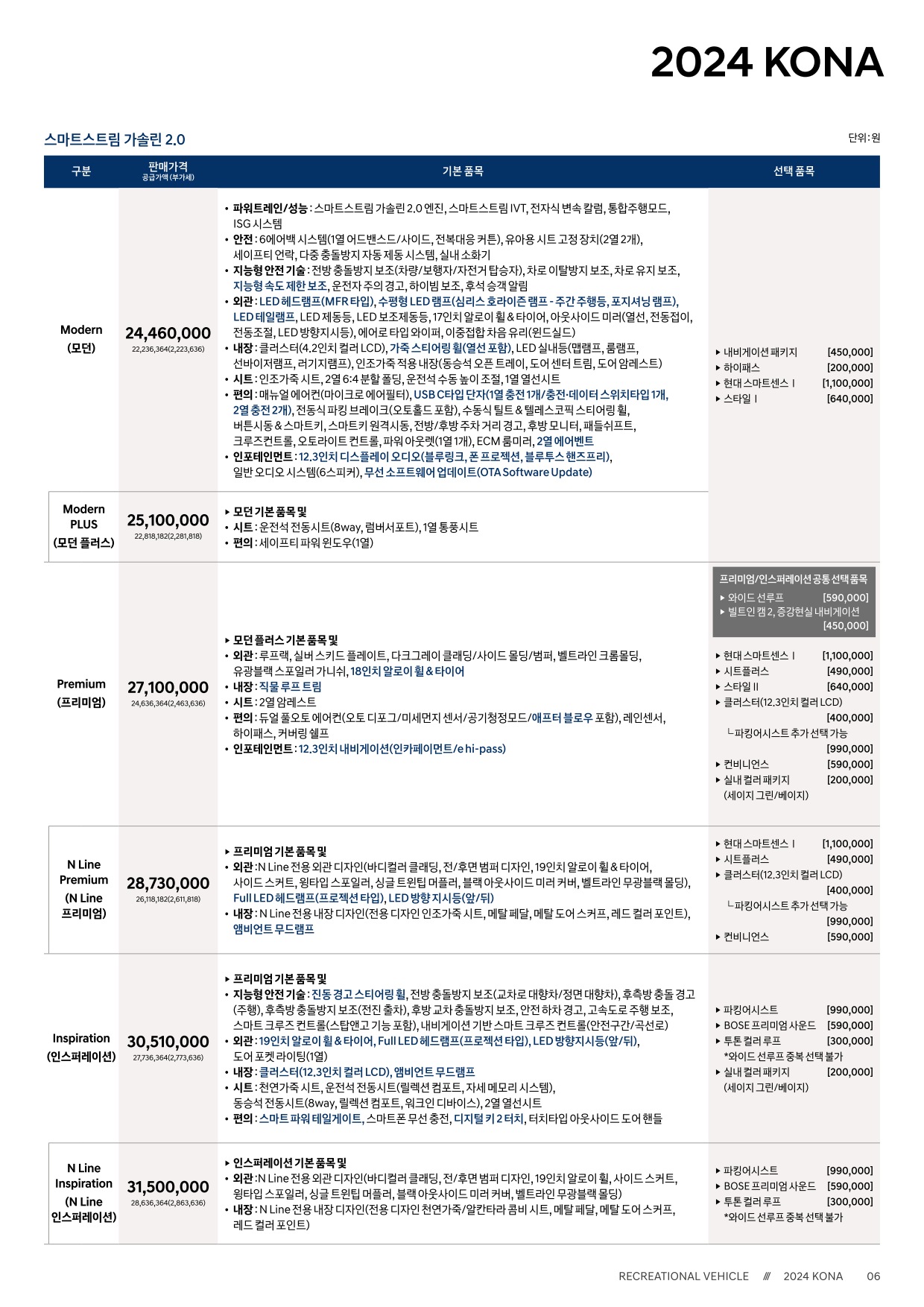 2024년 12월 코나 & 코나 하이브리드 신차가격표
