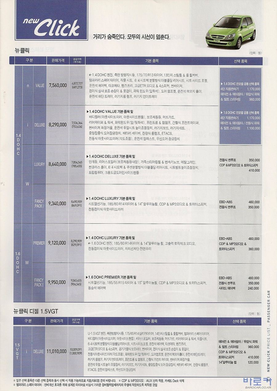 2006년 12월 뉴클릭 신차가격표