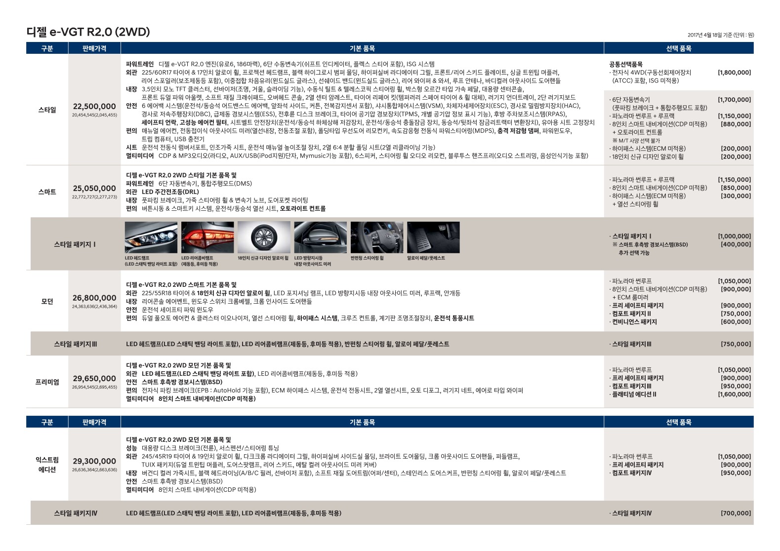 ※ 본 가격표의 모든 저작권은 해당 차량 제조사에 있습니다.