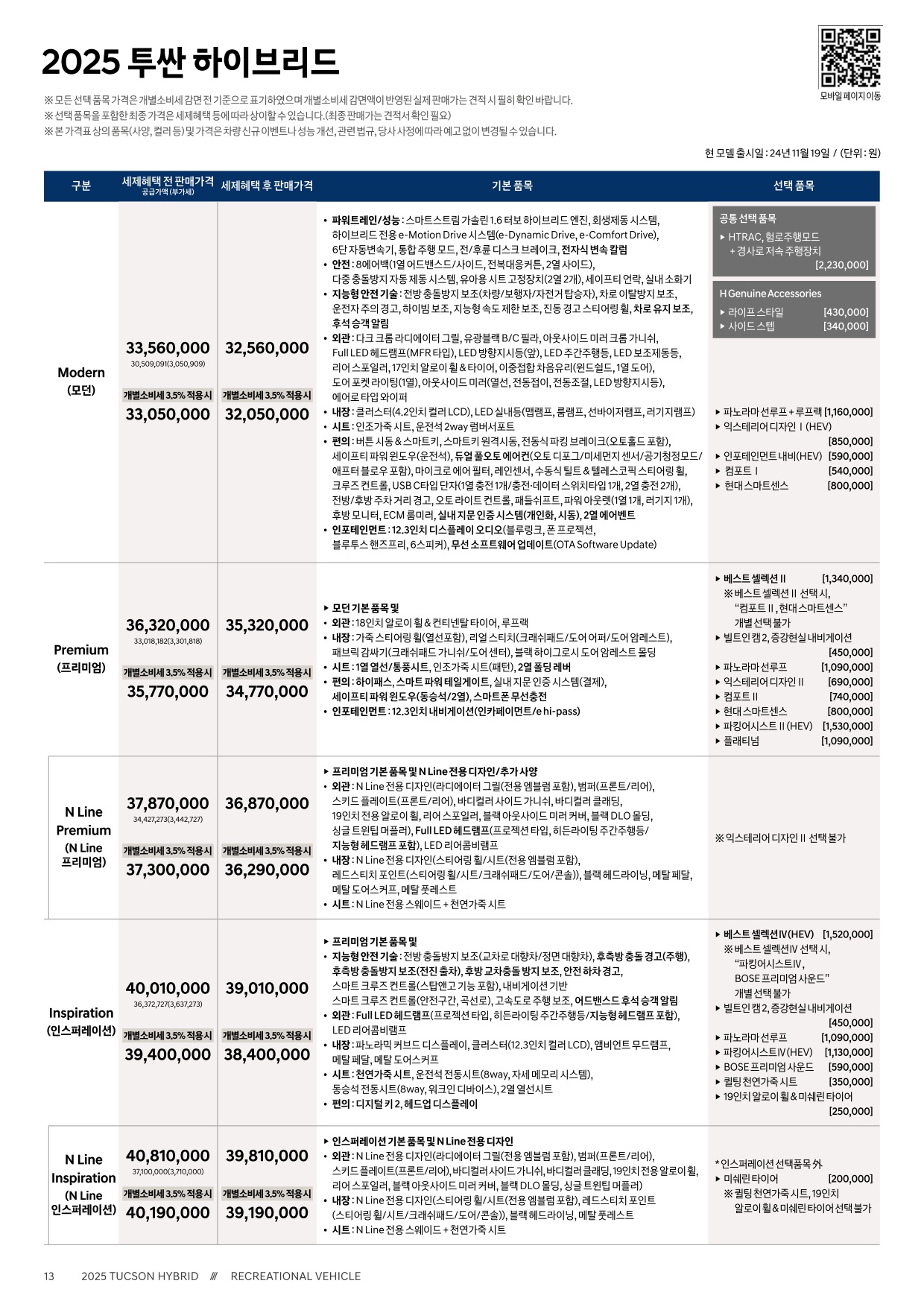 2025년 8월 투싼 신차가격표 (2026년형 투싼 출시)
