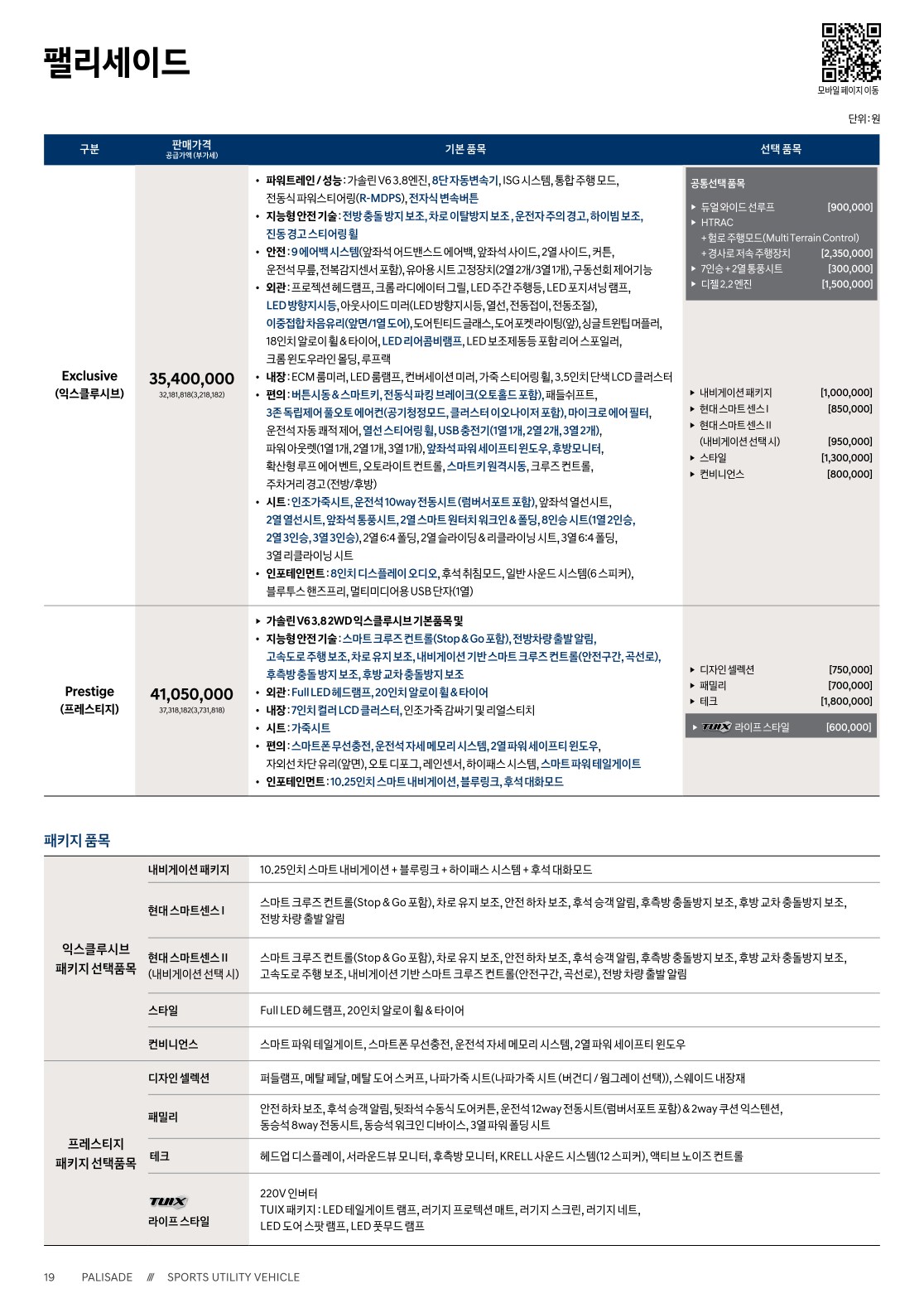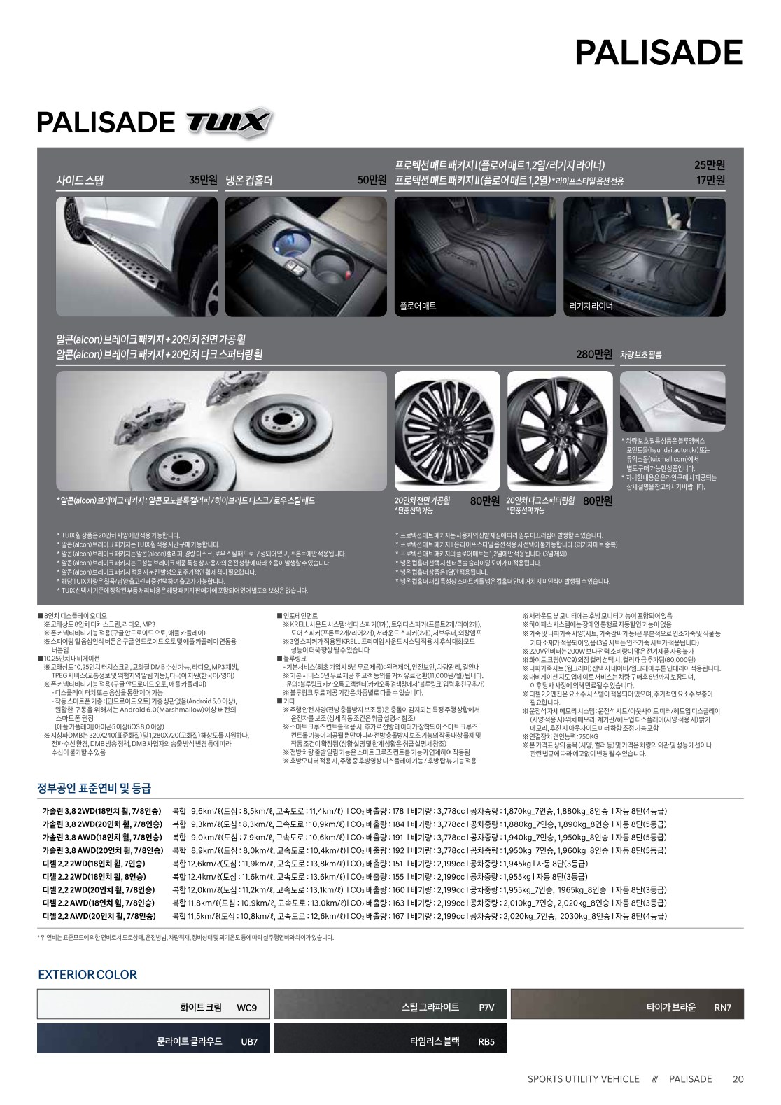 2020년 2월 팰리세이드 신차가격표