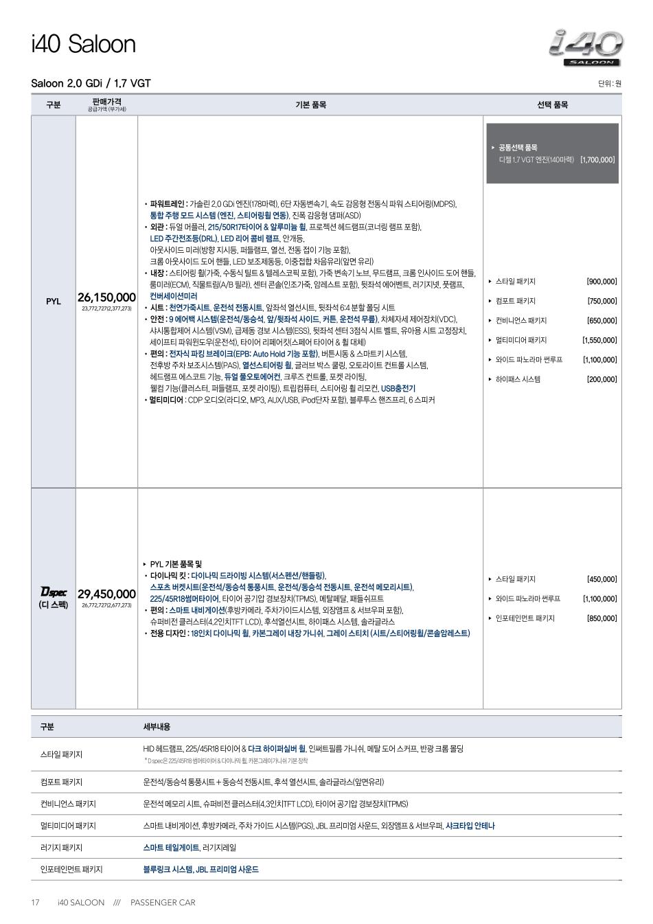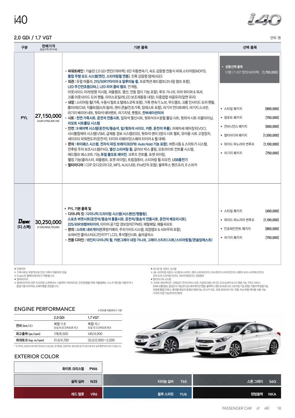 2015년 2월 i40 신차가격표 (더 뉴 i40)